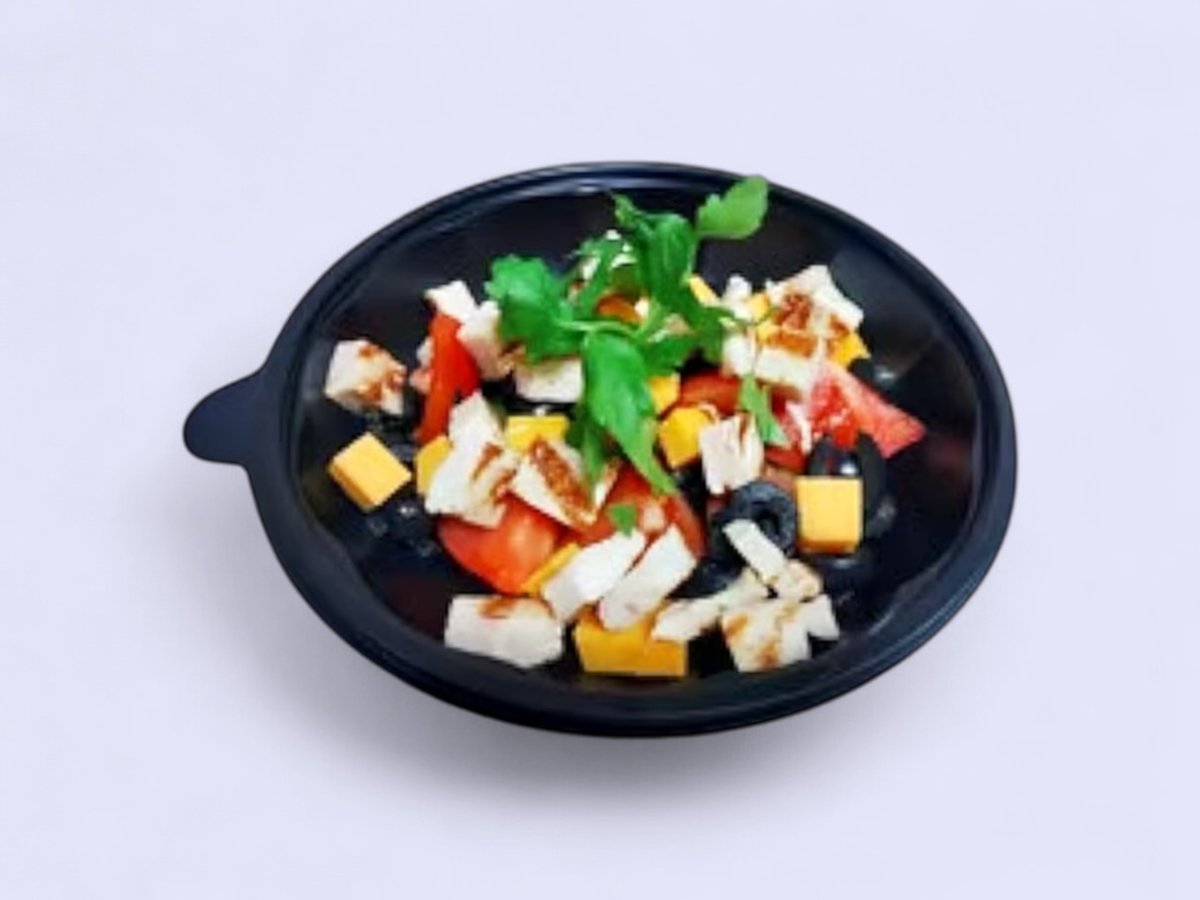 300г Домати, печено пиле, краставица, маслини, чедър, дресинг