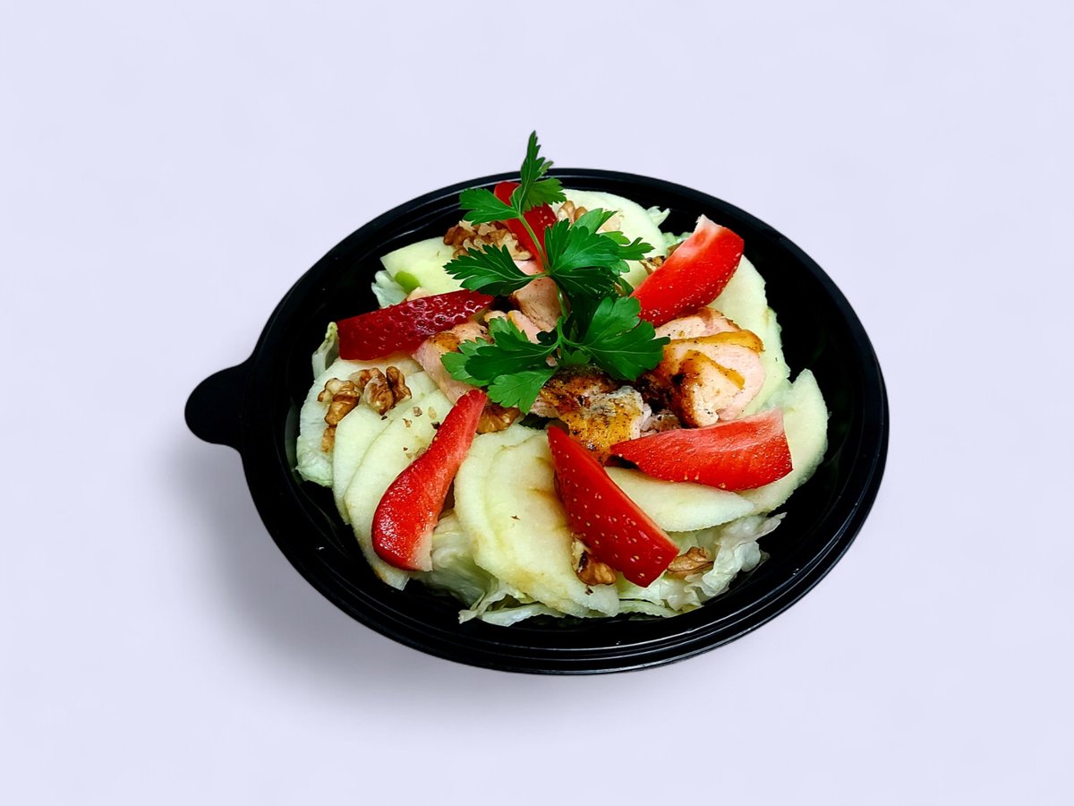 Айсберг, печена сьомга, ябълка, орех, ягода, дресинг