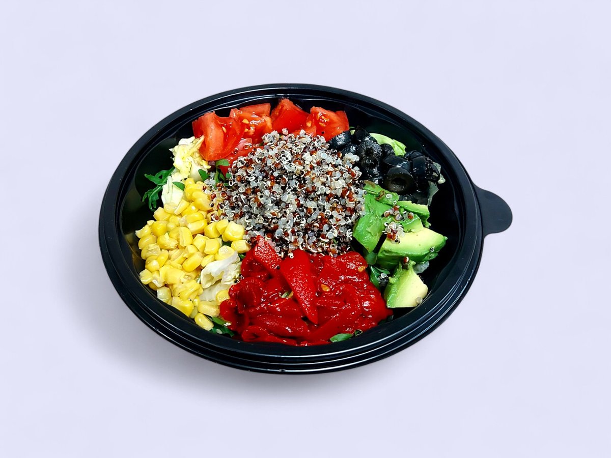 300г Айсберг, микс салати, киноа, маслини, царевица, домат,краставица , авокадо, дресинг