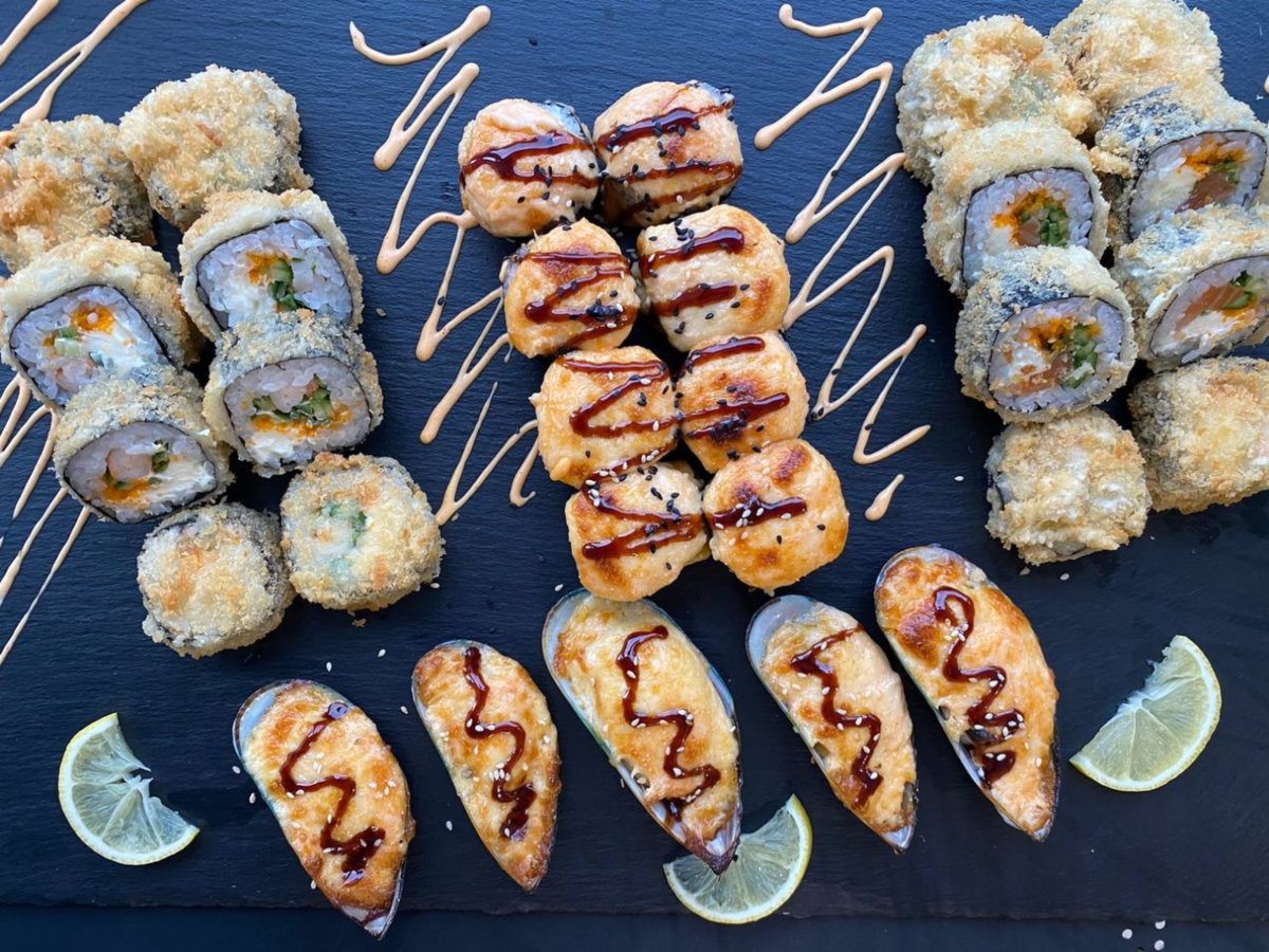 teмпура сьомга, темпура скадира, печен рол със змиорка, новозеландски миди, 29бр, 1000г
