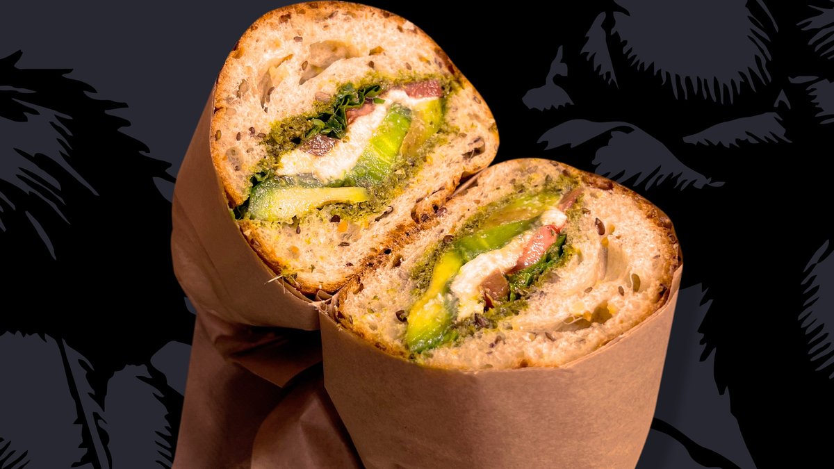 протеинов хляб с квас (36г протеин в чабата), босилеково песто, авокадо, моцарела, пресен домат, рукола, редукция от балсамико, 350г /50г протеин Калории: 1060 Протеин: 50г Въглехидрати: 64г Мазнини: 67г