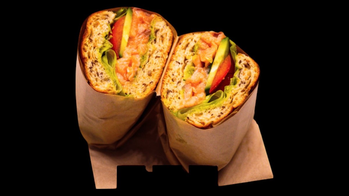 домашно изпечена протеинова чабата с квас и семена (36г протеин в чабата), паста от авокадо, филе от пушена сьомга, краставица, домат, айсберг, 400г/54г протеин Калории: 670 Протеин: 54г Въглехидрати: 54г Мазнини: 26г