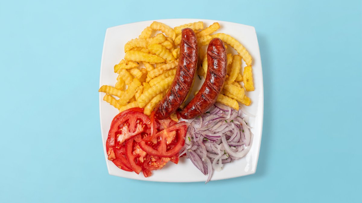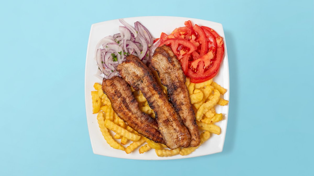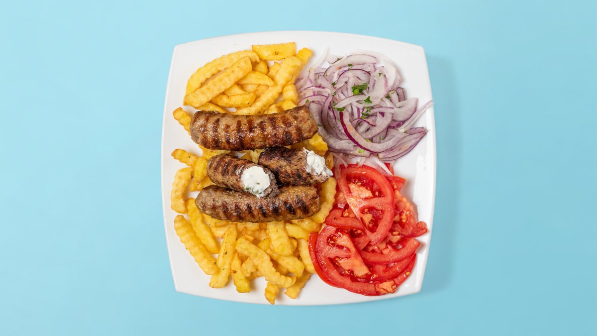 2 броя свински гръцки наденици с гарнитура по избор 450г