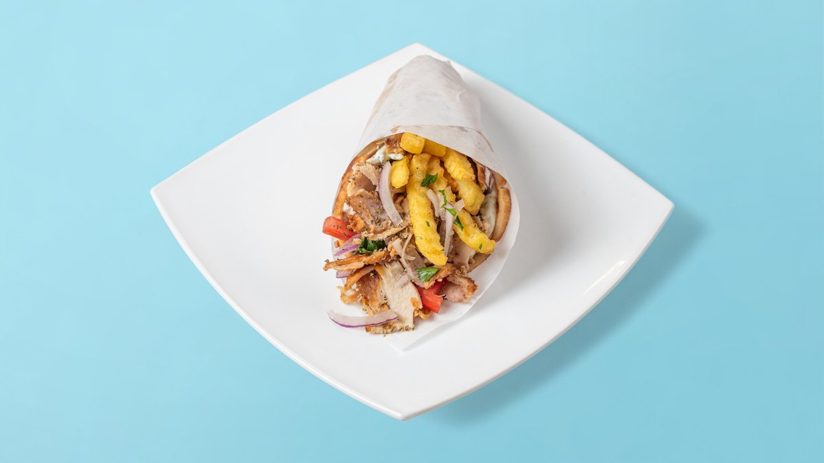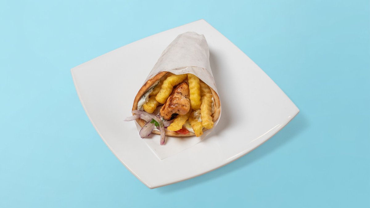 фино нарязано пилешко месо обвито във вкусна гръцка пита, с избор на салати и сос 430г