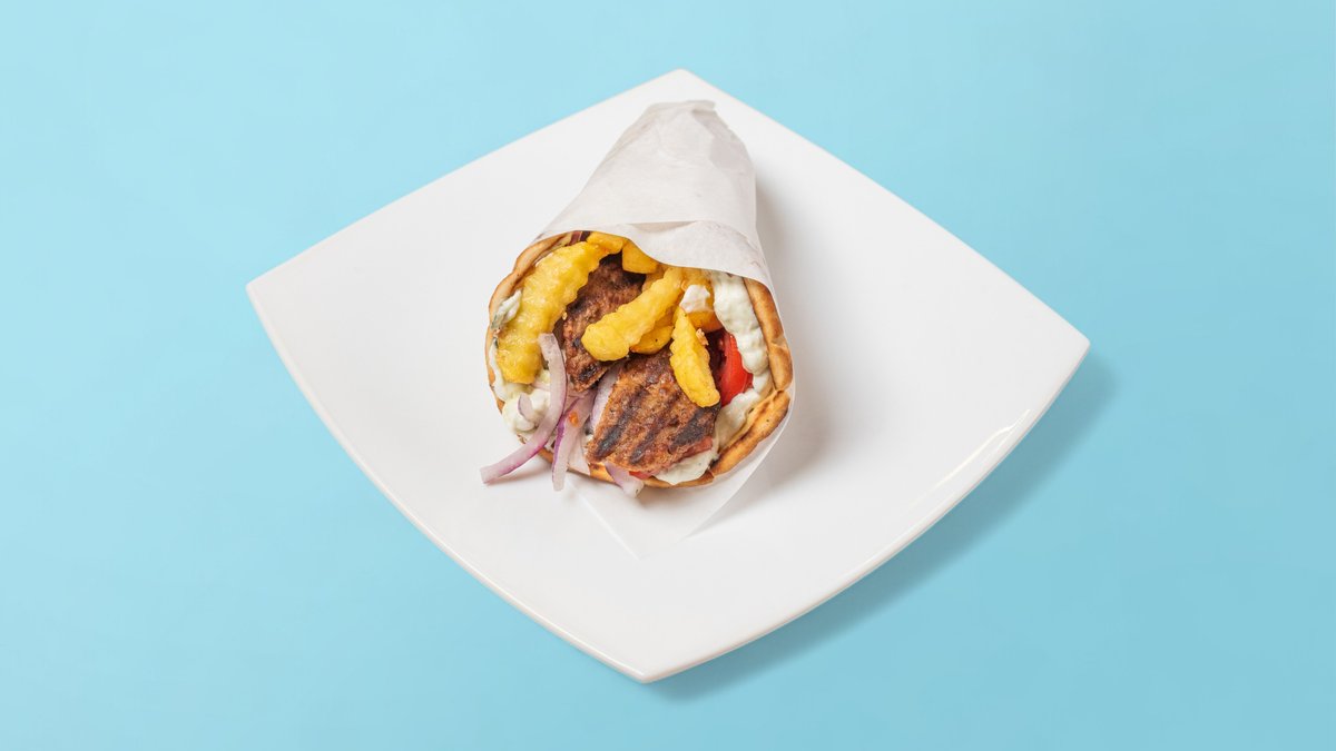 1 брой бифтеки обвит във вкусна гръцка пита, с избор на салати и сос 280г
