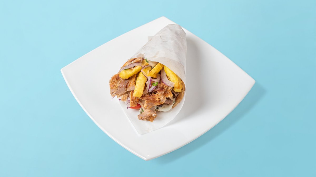 фино нарязано свинско месо обвито във вкусна гръцка пита, с избор на салати и сос 220г