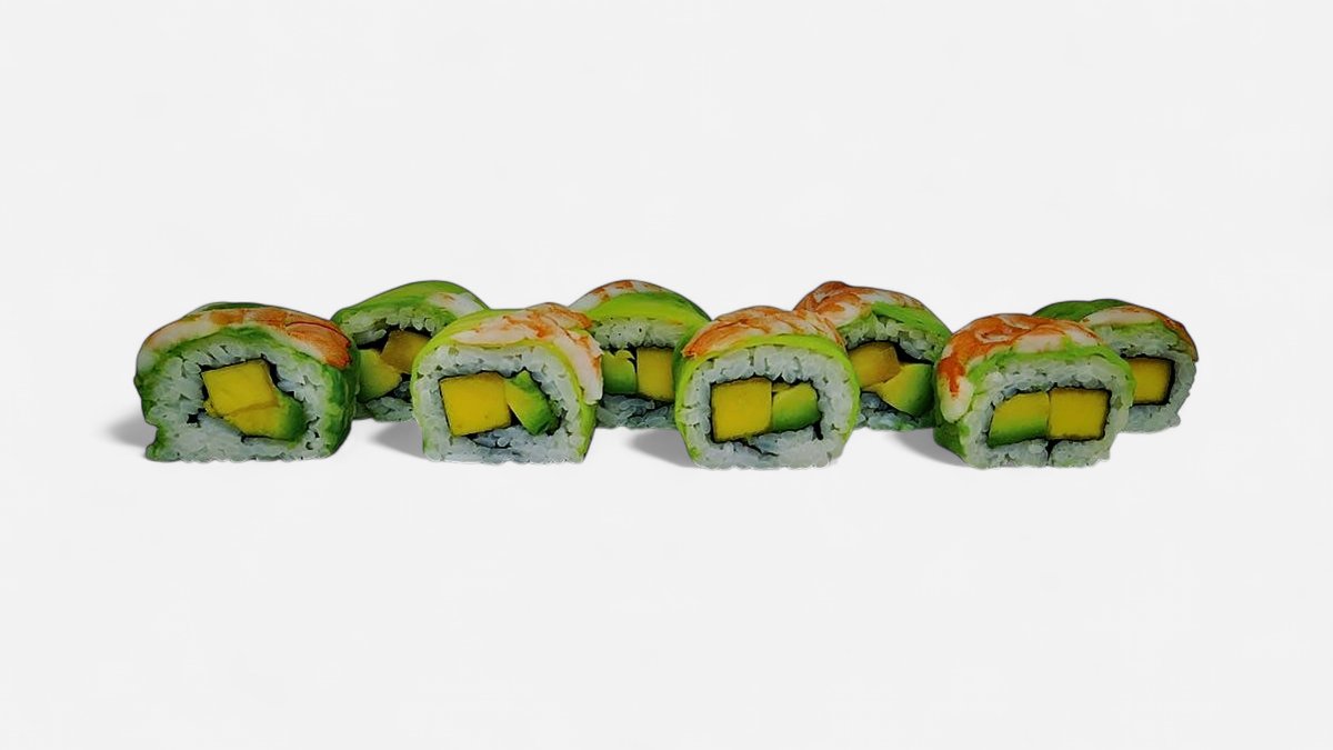 ориз, скарида, авокадо, манго, едамаме, уакаме, сусам, пържен лук, унаги сос, майонеза 320г