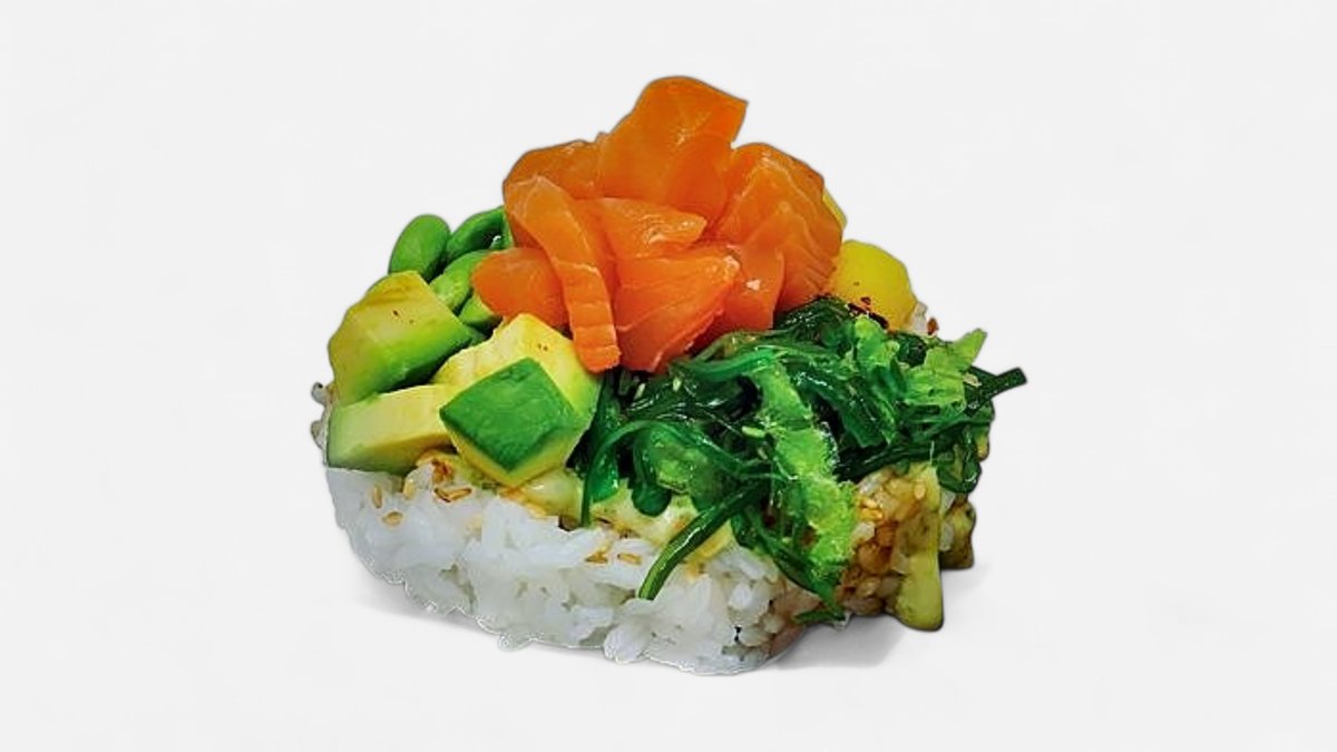 ориз, сьомга, авокадо, манго, едамаме, уакаме, сусам, пържен лук, унаги сос, майонеза 320г