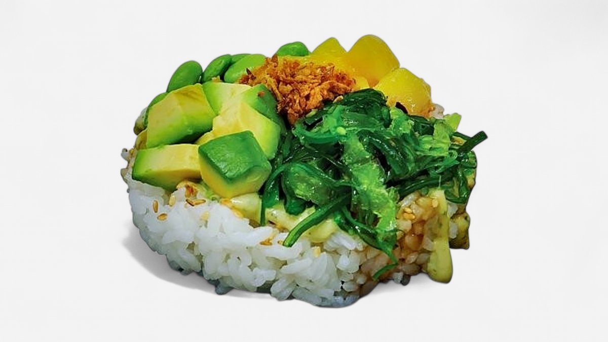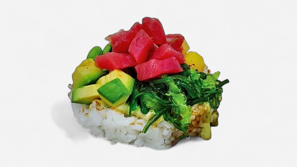 ориз, риба тон, авокадо, манго, едамаме, уакаме, сусам, пържен лук, унаги сос, майонеза 320г