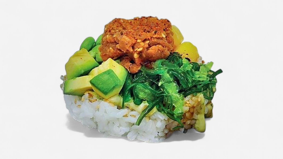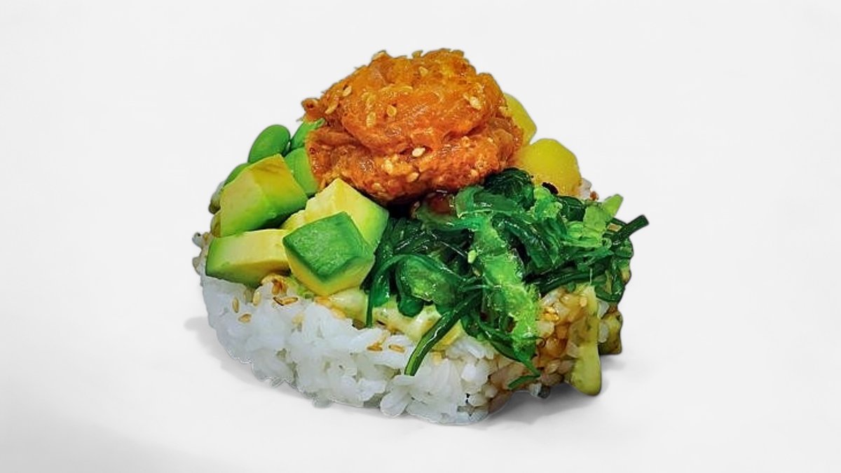 ориз, спайси тон, авокадо, манго, едамаме, уакаме, сусам, пържен лук, унаги сос, майонеза 320г