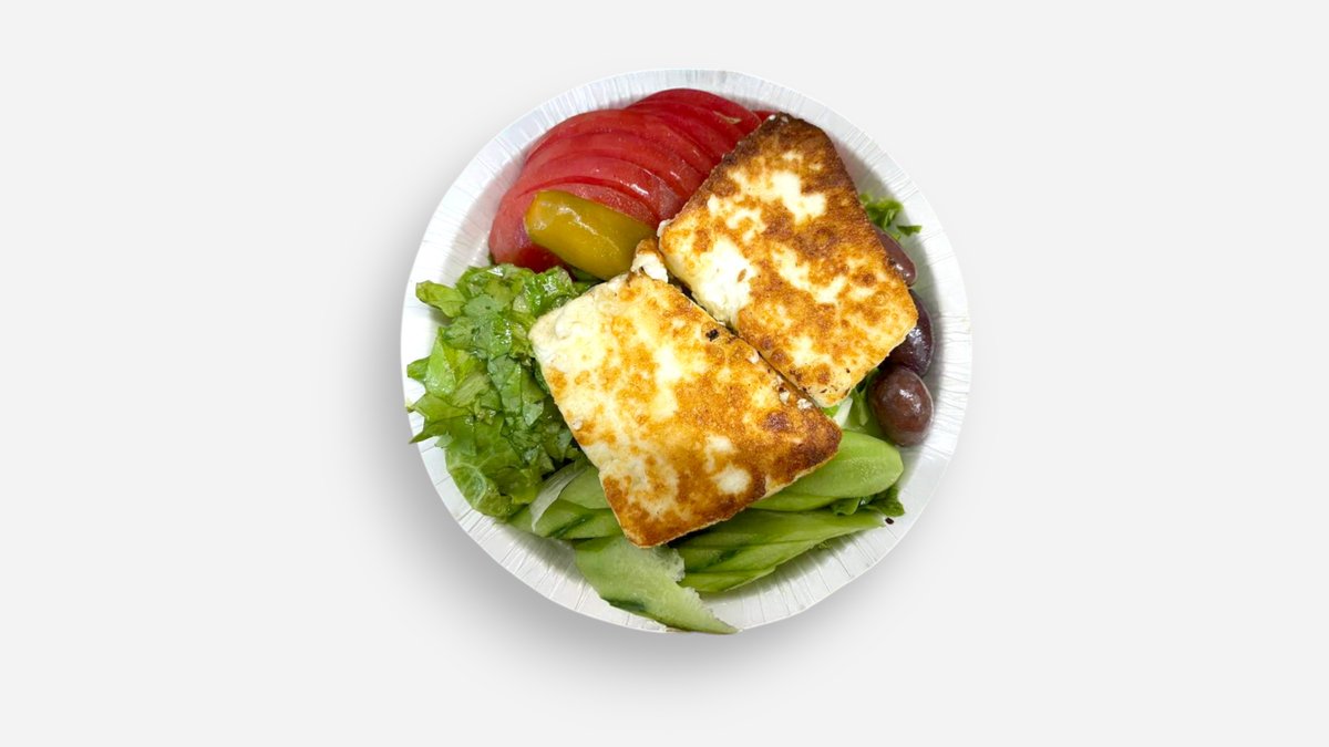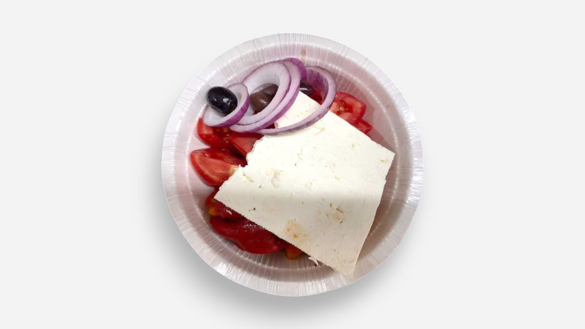 домати, краставици, зелена салата, жарено сирене, лук, люта чушка, маслини 350г