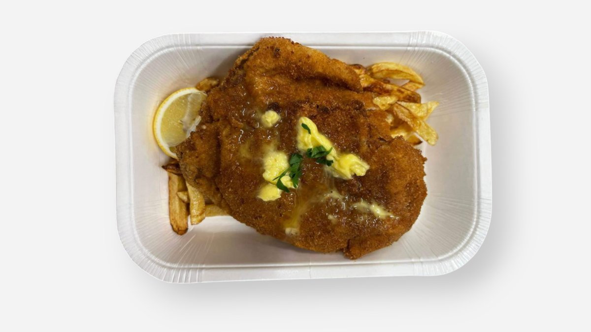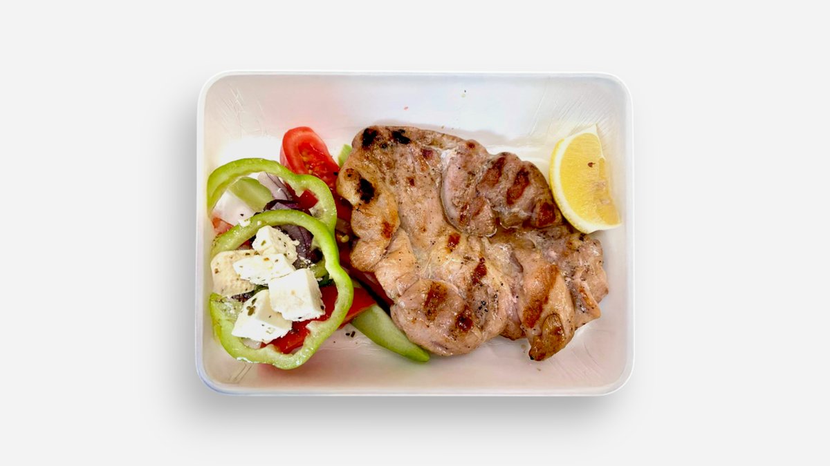 Пилешка пържола с гарнитура гръцка салата общо 400г.