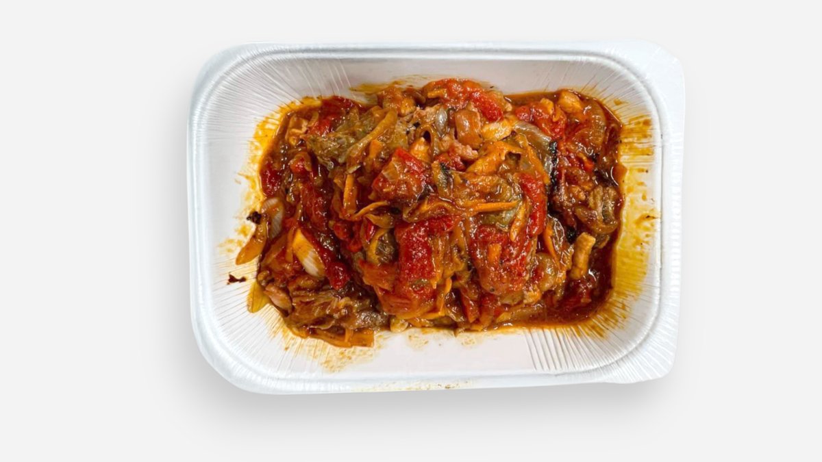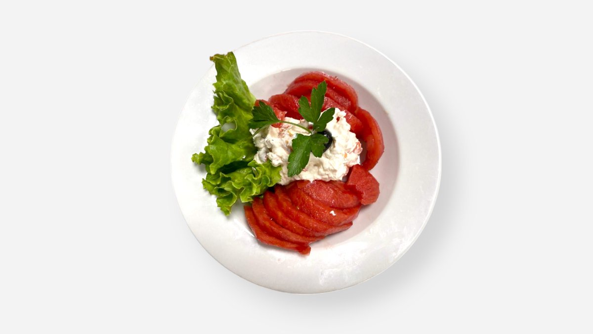 домати, печени чушки, плочка сирене, лук, магданоз 350г