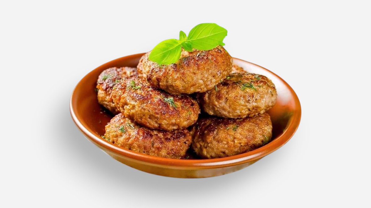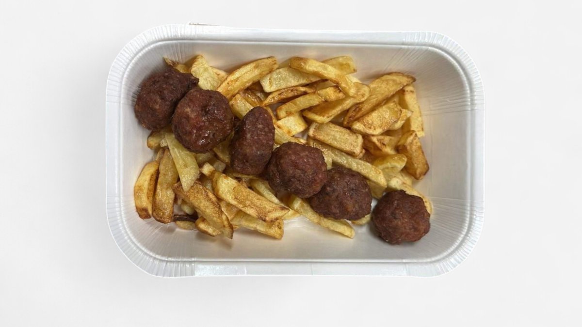 6 бр кюфтенца, върху канапе от зелена салата и пържени картофи 450г