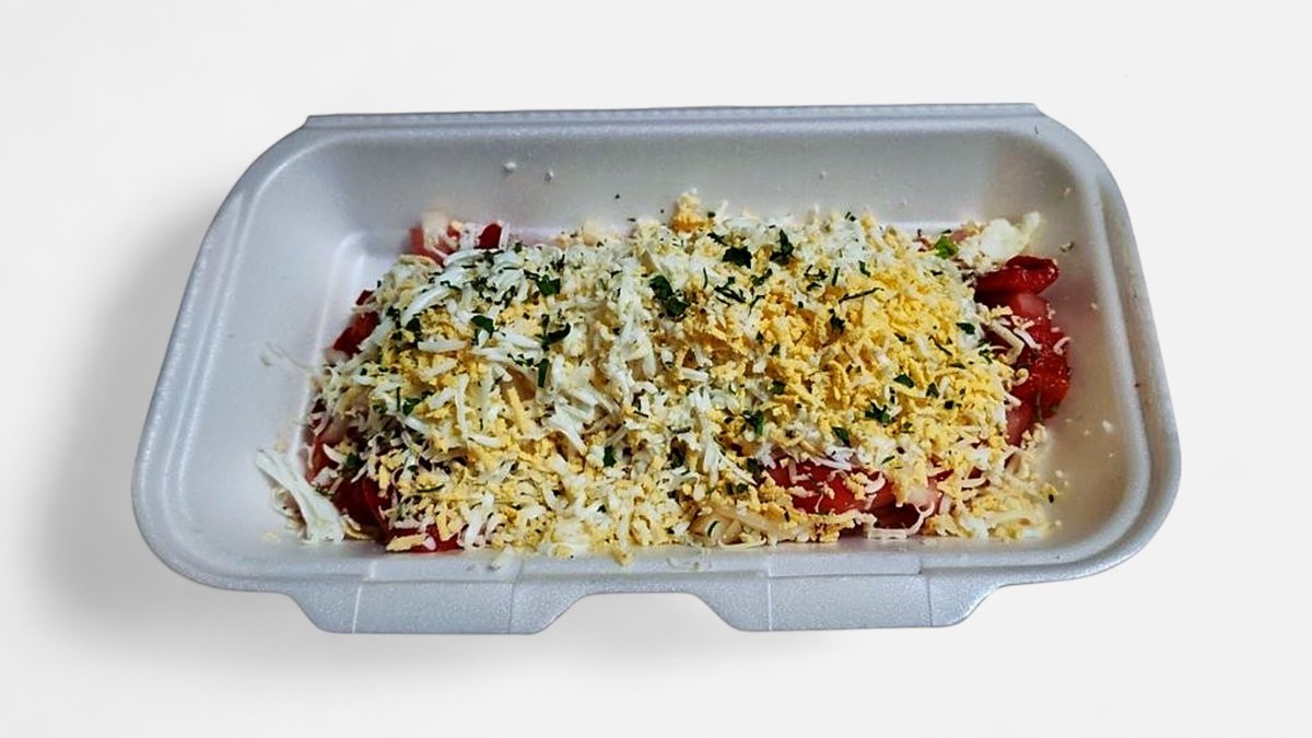 домати, сирене, яйце, печени чушки, магданоз 350г