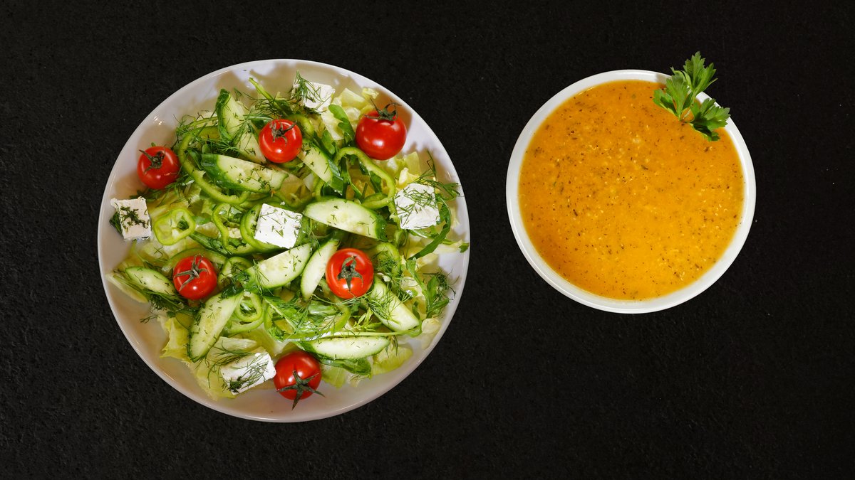 360г + супа 300мл изберете сред изобилието от свежи салати, а ние ще я сервираме със здравословна супа