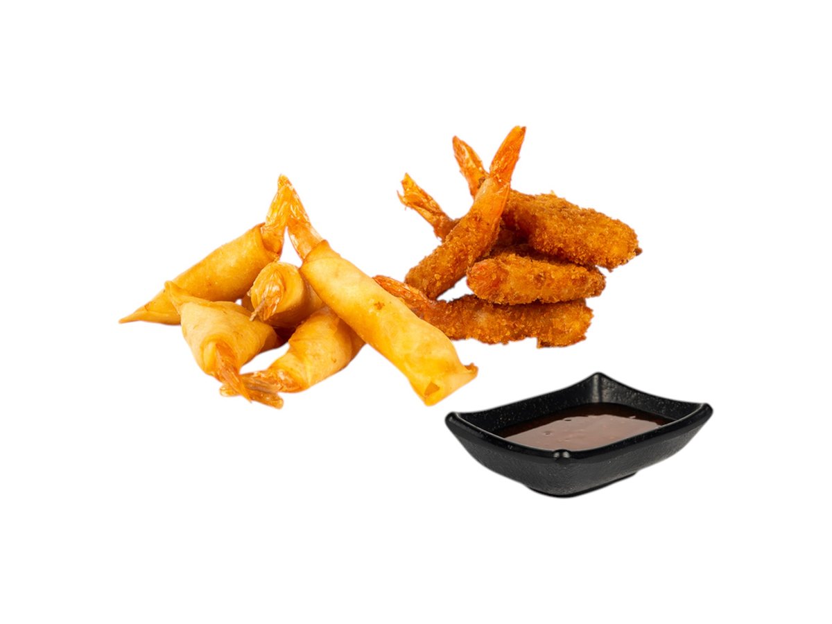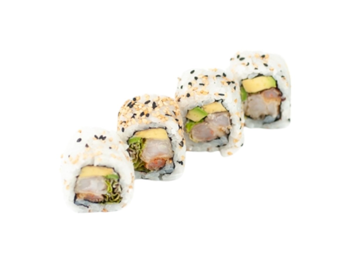 4 броя, ориз, нори, скарида в темпура, авокадо, японска майонеза, листна салата, към всяка порция има джинджифил, уасаби и соев сос 110г