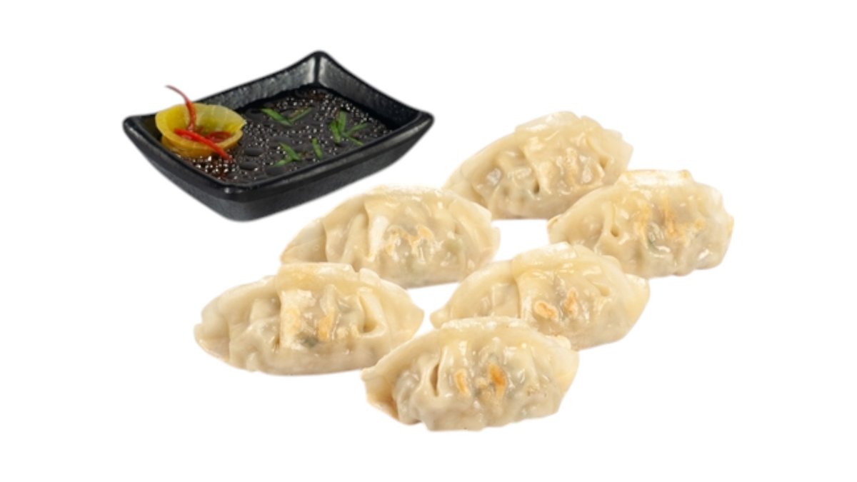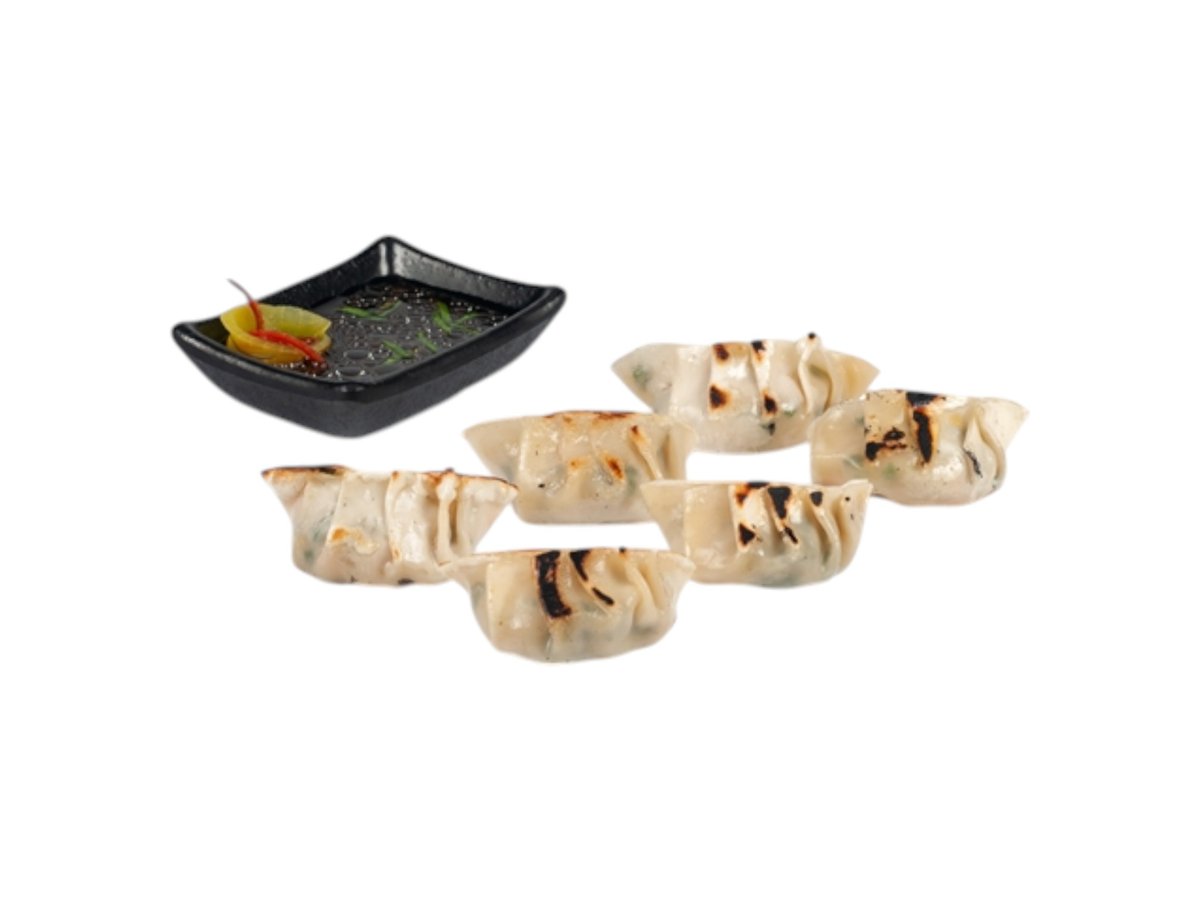 ръчно приготвена гьоза, напълнена с тофу китайско зеле, гъби шийтаке, пресен лук, джинджифил, чесън, соев сос, хойсин сос 150г