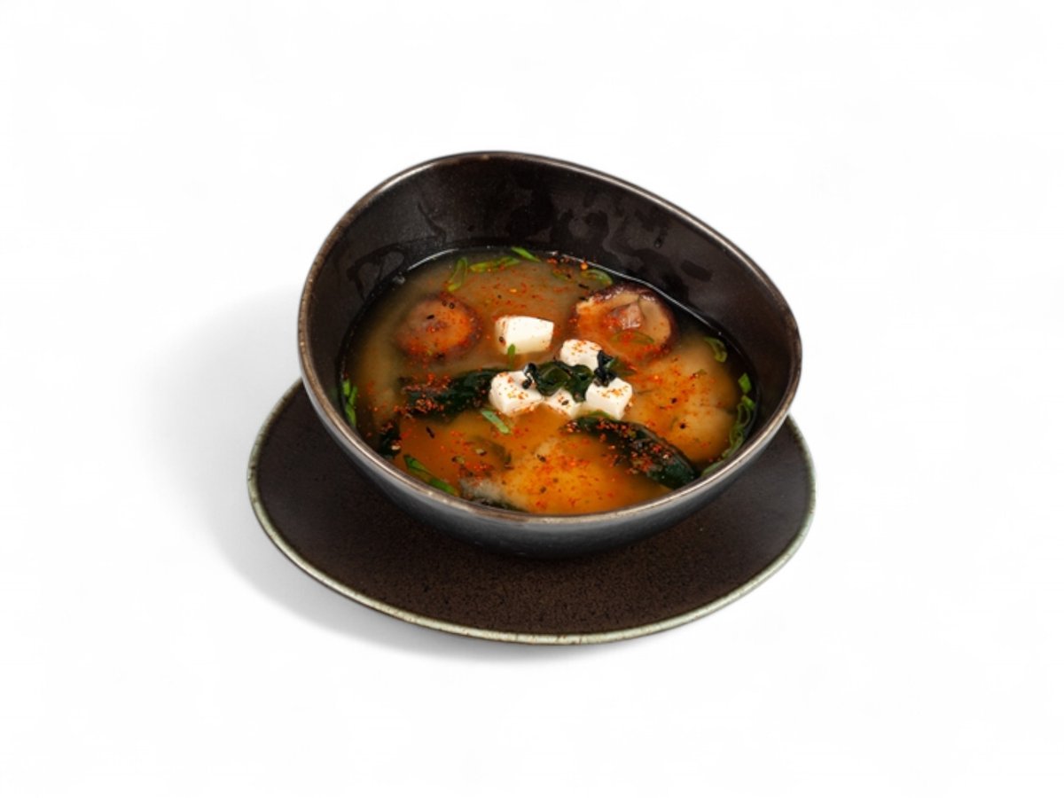 бульон даши, мисо паста, скариди, октопод, пушено тофу, пресен лук, уакаме 250мл