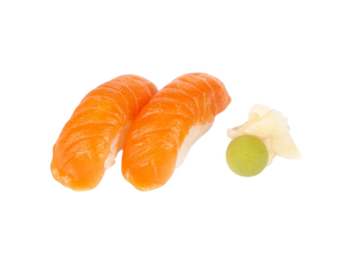 14 броя, нигири сьомга 6х, хосомаки сьомга 4х, хосомаки краставица 4х (комплекта включва: 1 брой клечки за суши, 1x 20г джинджифил, 1x 20г уасаби, 1x 20мл соев сос Kikkoman Less Salt) 320г