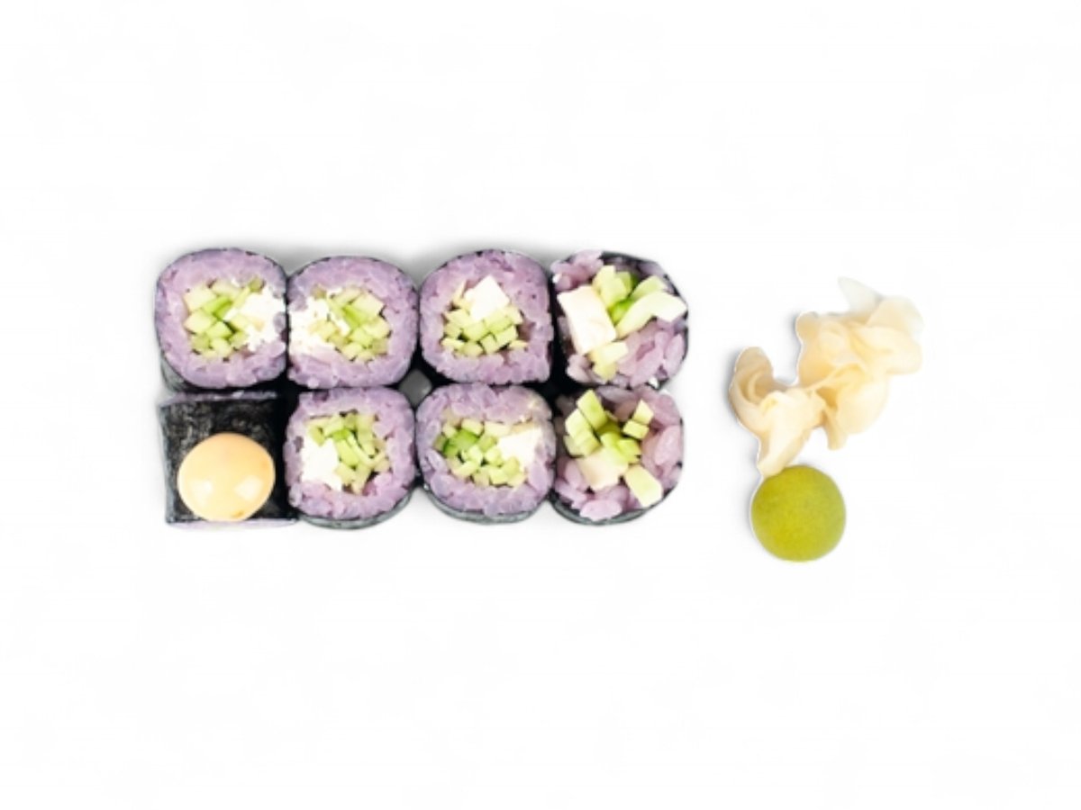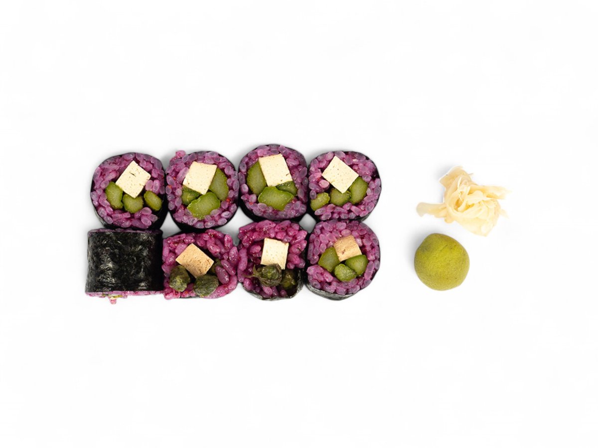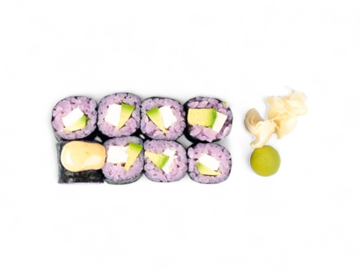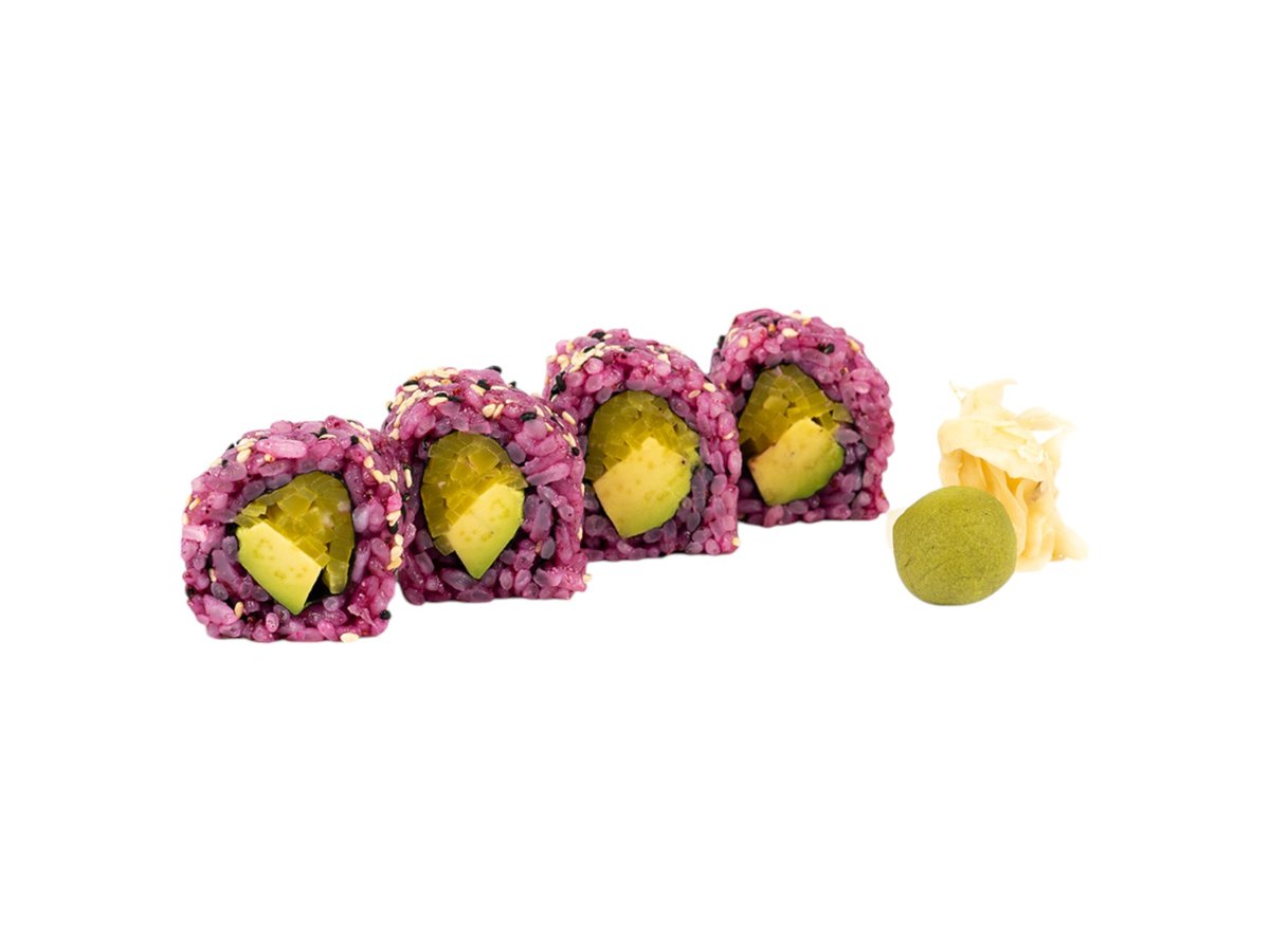 4 броя, боровинков ориз, нори, пушено тофу, авокадо, краставица, сусам към всяка порция има джинджифил, уасаби и соев сос 110г