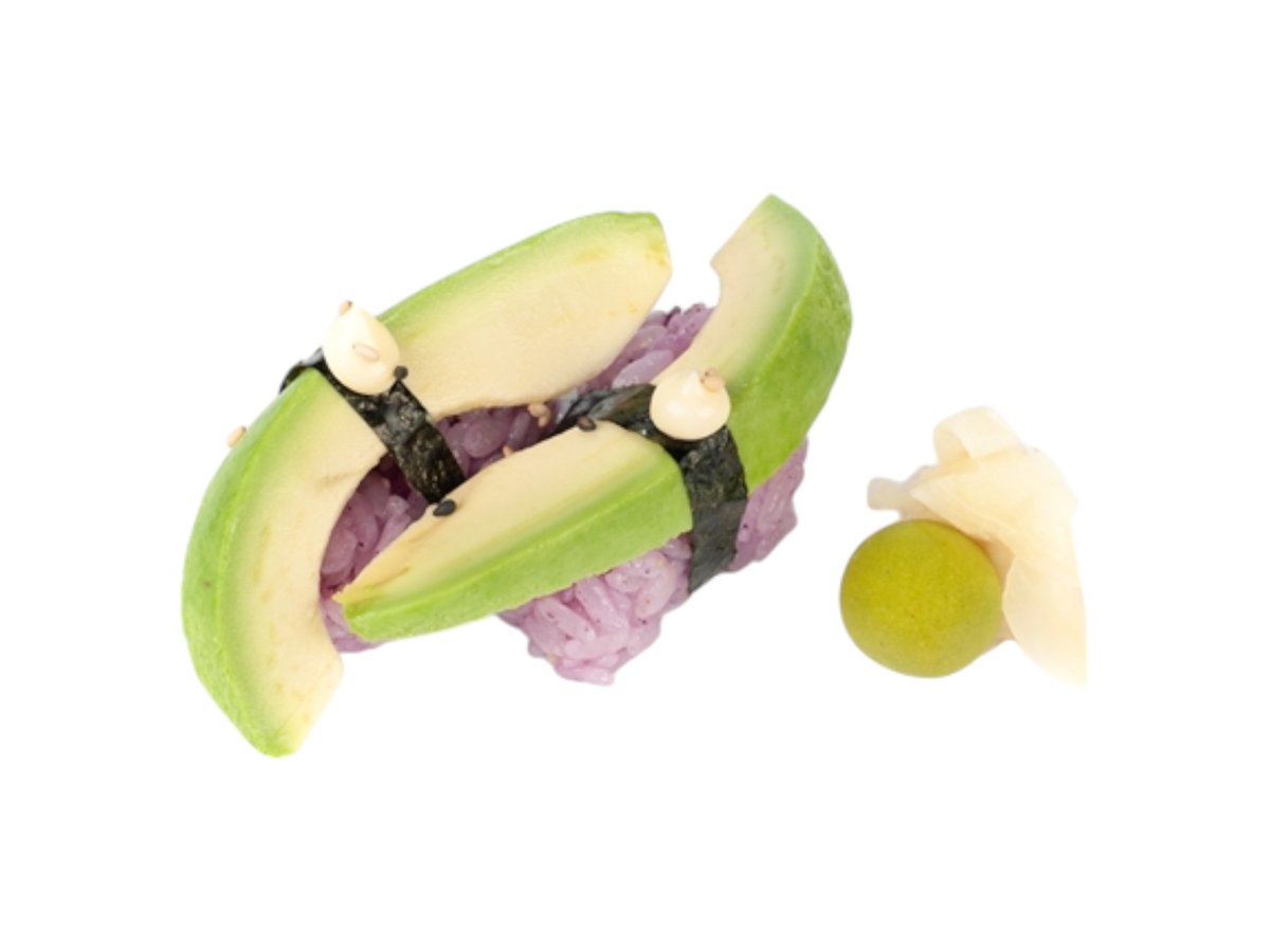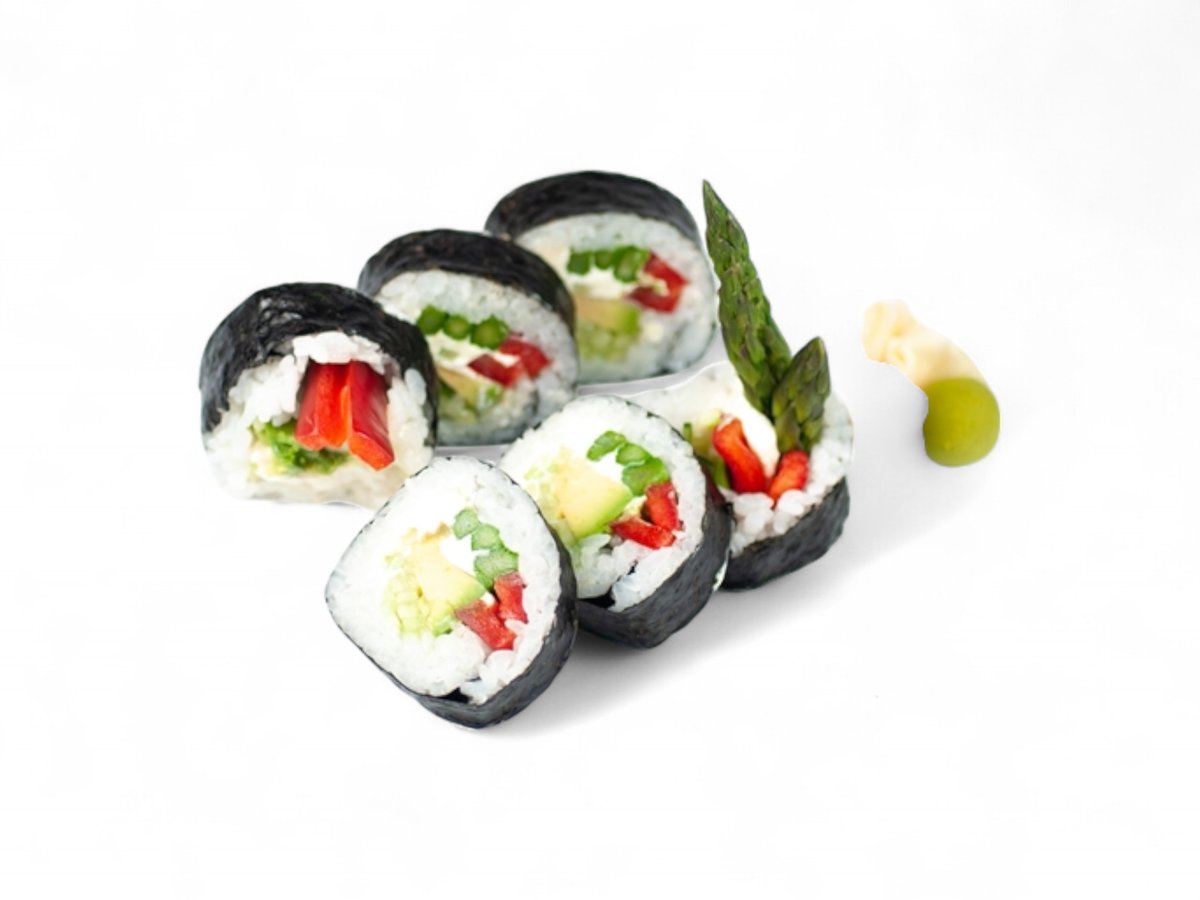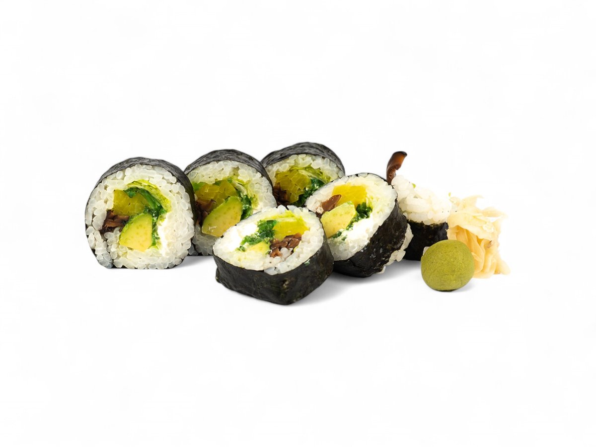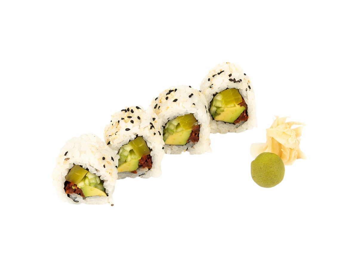 4 броя, боровинков ориз, нори, пушено тофу, авокадо, краставица, сусам към всяка порция има джинджифил, уасаби и соев сос 110г