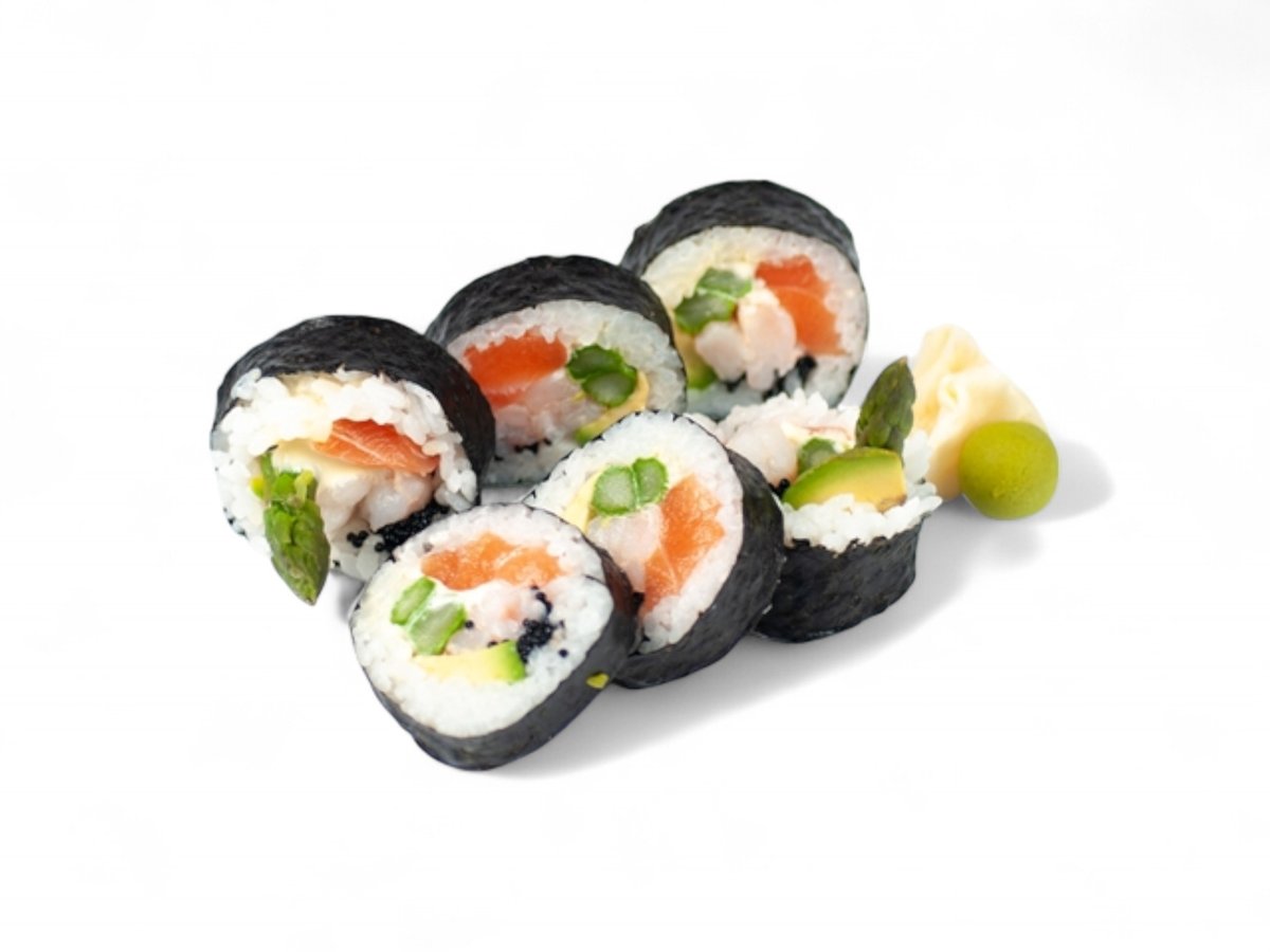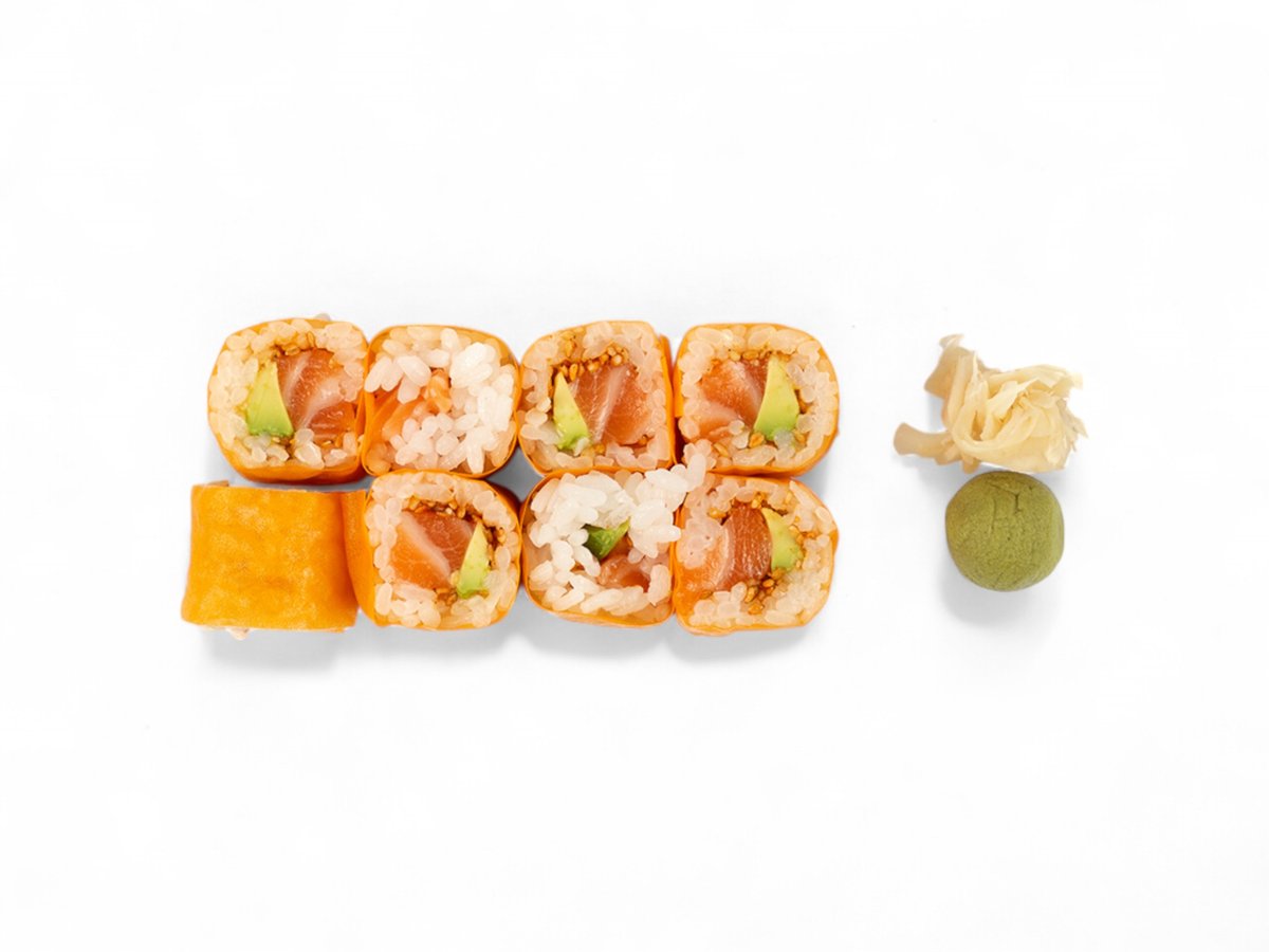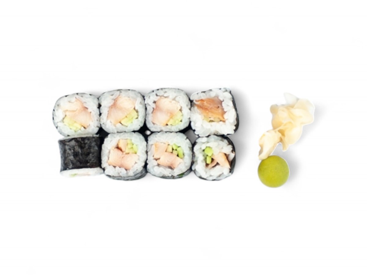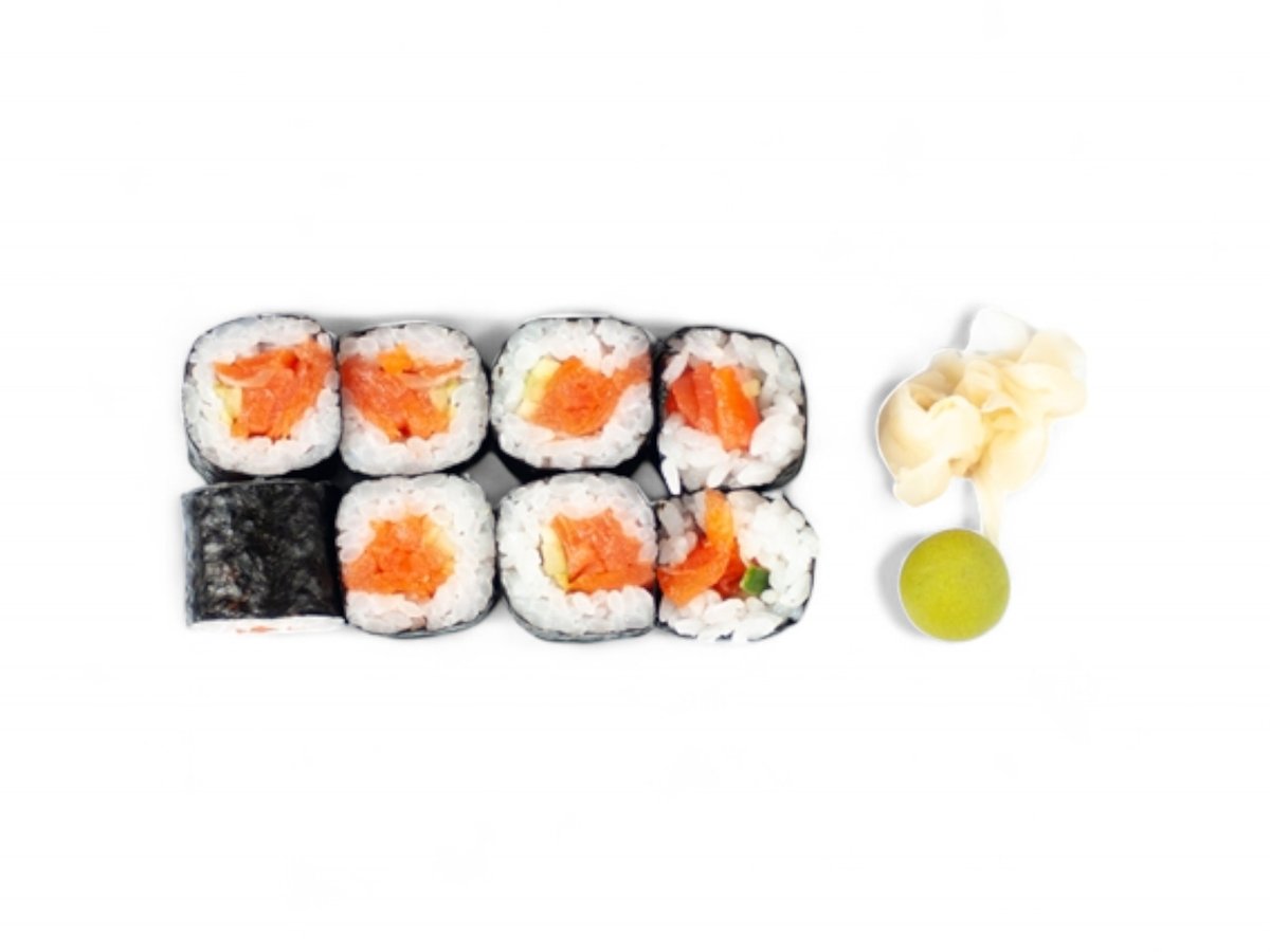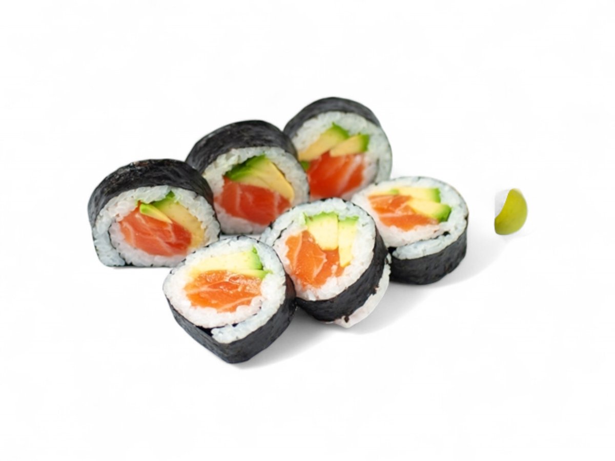 6 броя, ориз, прясна сьомга, авокадо, Koi сос, към всяка порция има джинджифил, уасаби и соев сос 130г