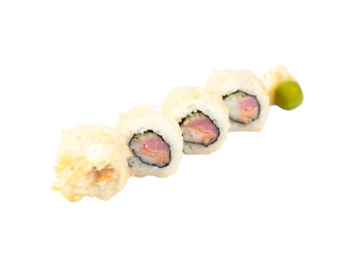 4 броя, ориз, нори, подбрани пресни риби, краставица, панировка темпура, Кoi сос към всяка порция има джинджифил, уасаби и соев сос 110г