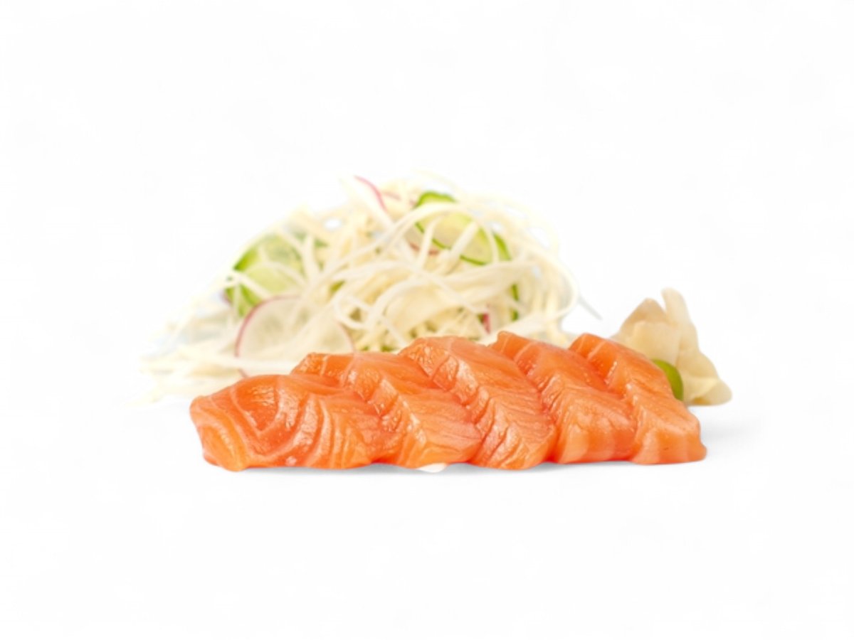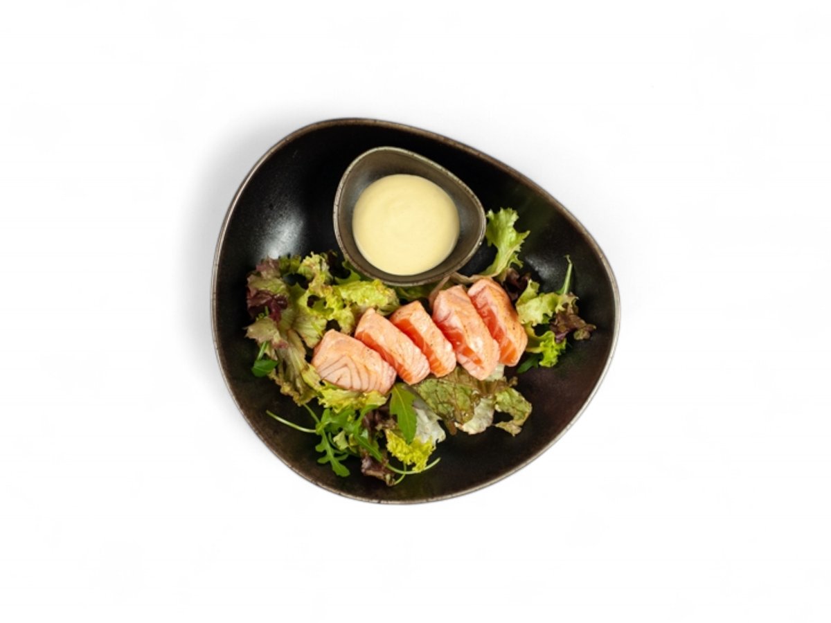прясна сьомга върху канапе от ряпа дайкон, краставица, репичка, към всяка порция има джинджифил, уасаби и соев сос 70г