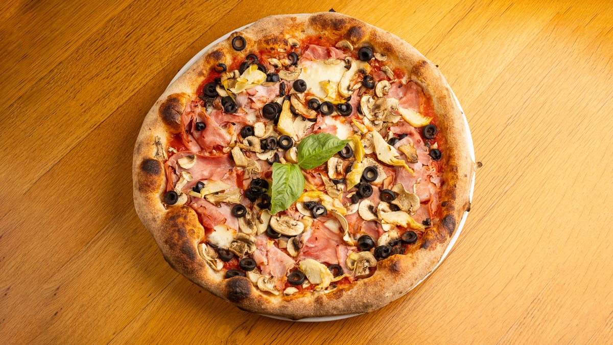 доматен сос, моцарела, прошуто, гъби, артишок и маслини 520г