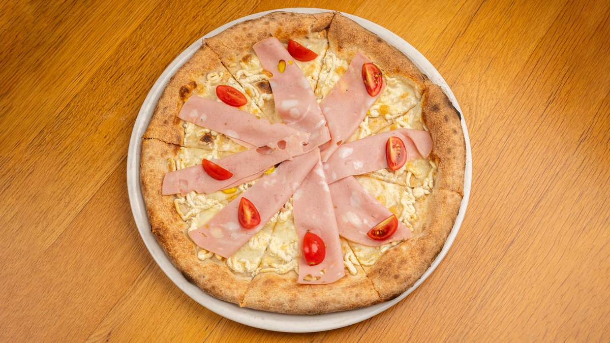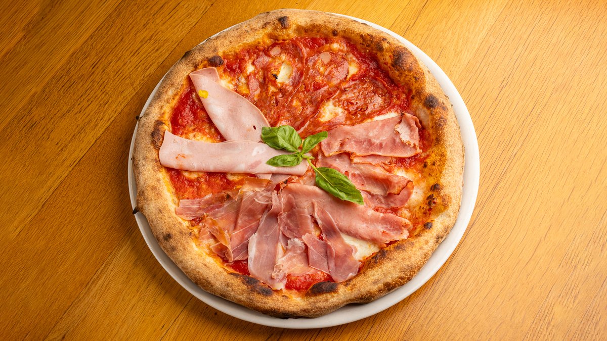 доматен сос, моцарела, прошуто кото, прошуто крудо, пикантен салам и мортадела 480г