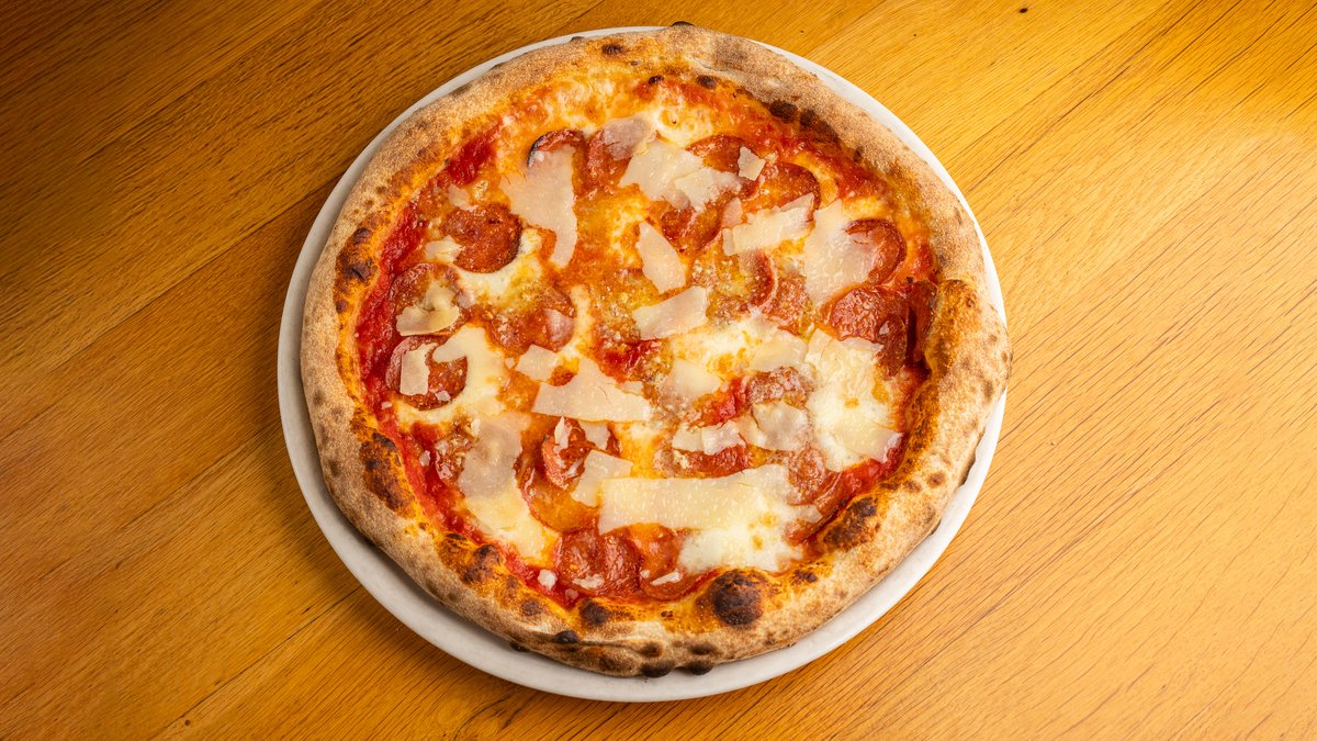 доматен сос, пикантен салам Наполи, моцарела, горгонзола, грана падано 450 г