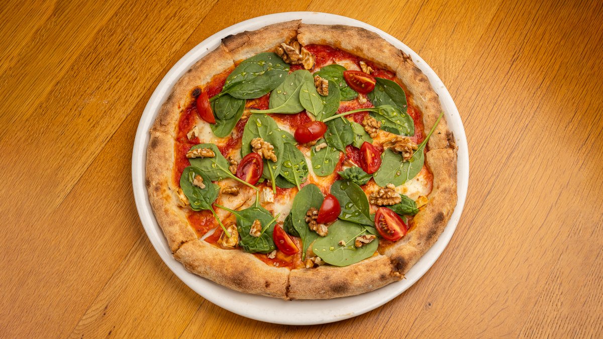 доматен сос, моцарела, козе сирене, бейби спанак, орехи, мед и чери домати 460г
