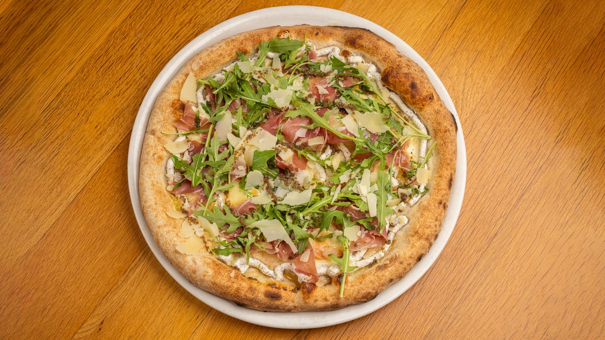 моцарела, пармезан, крем от трюфел, прошуто крудо, рукола 400г