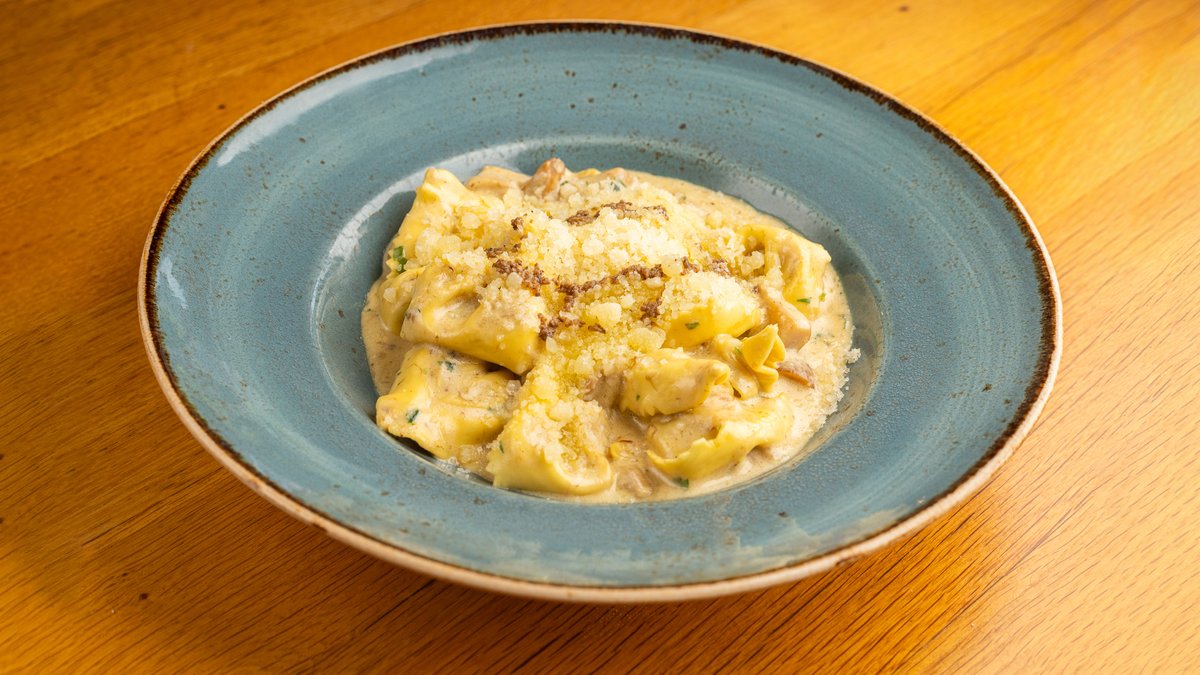 пресни равиоли с мус от манатарки и крем от трюфел, манатарки, чесън, масло, Грана Падано, трюфелов зехтин, 250г