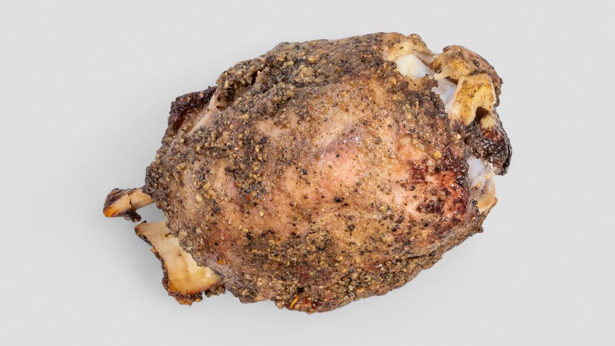 бавно печена свинска плешка, домат, грилован лук, кисели краставички, BBQ сос, майонеза 400гр