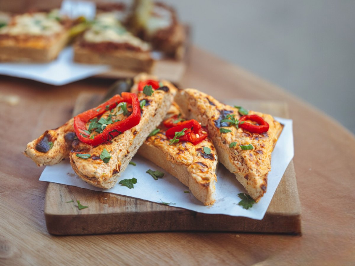 домашна лютеница без добавена захар, занаятчийски кашкавал - всяка порция съдържа 2 броя принцеси