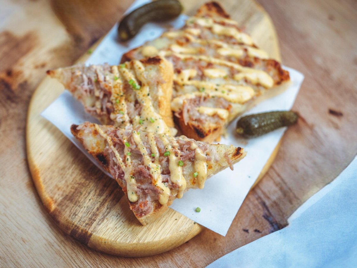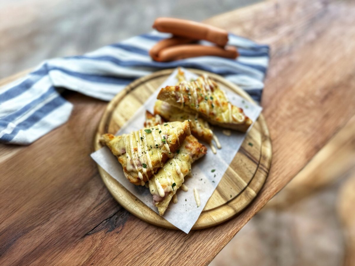 фермерски кренвирши от 100% свинско месо, нашата домашна майонеза и фермерски кашкавал
