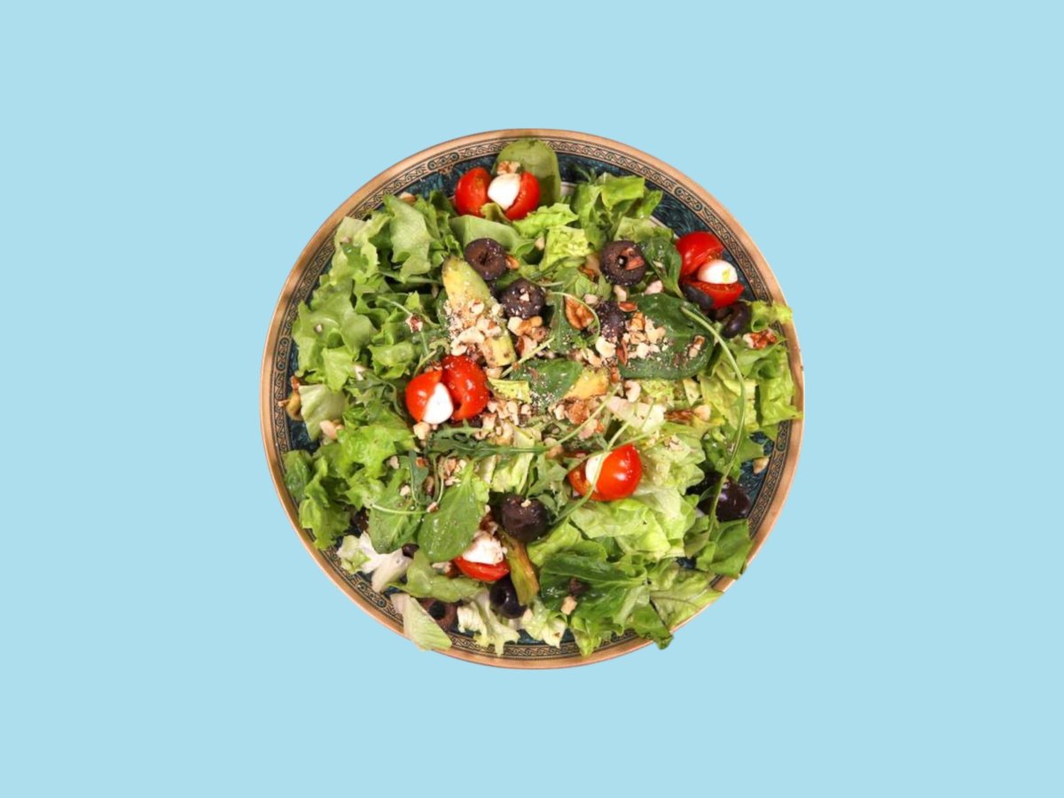 маруля, бейби спанак, рукола, чери домати, бейби моцарела, авокадо, маслини, орехи, 300г