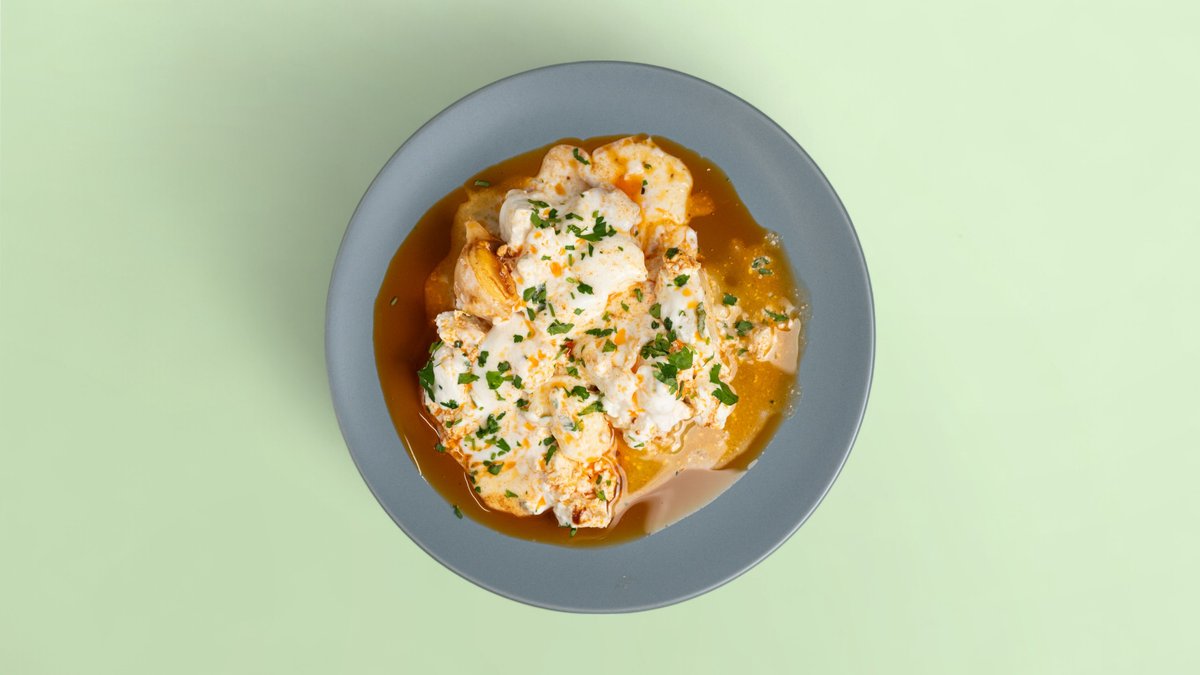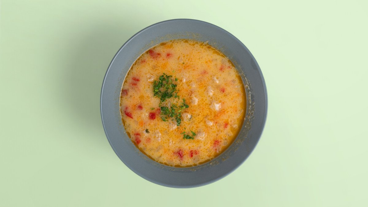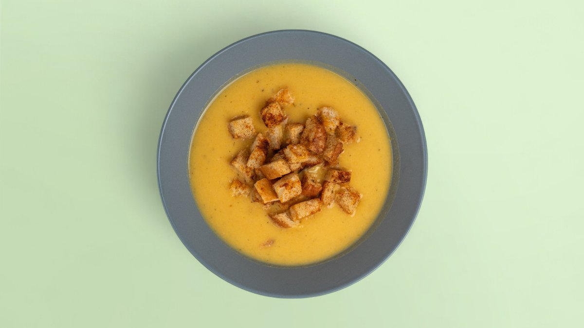 Доматена крем супа с фета сирене и домашно приготвени крутони