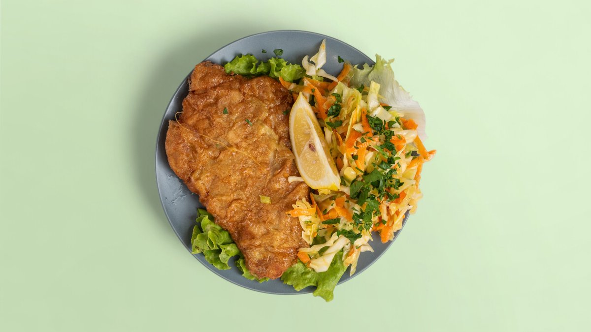 Натурален шницел от свинско контрафиле със зелева салата 350 гр.