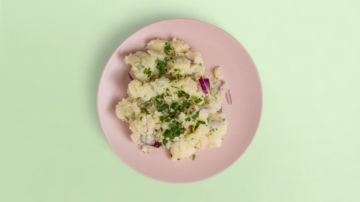 Натурален шницел от свинско контрафиле с картофена салата и домашна едро смляна лютеница