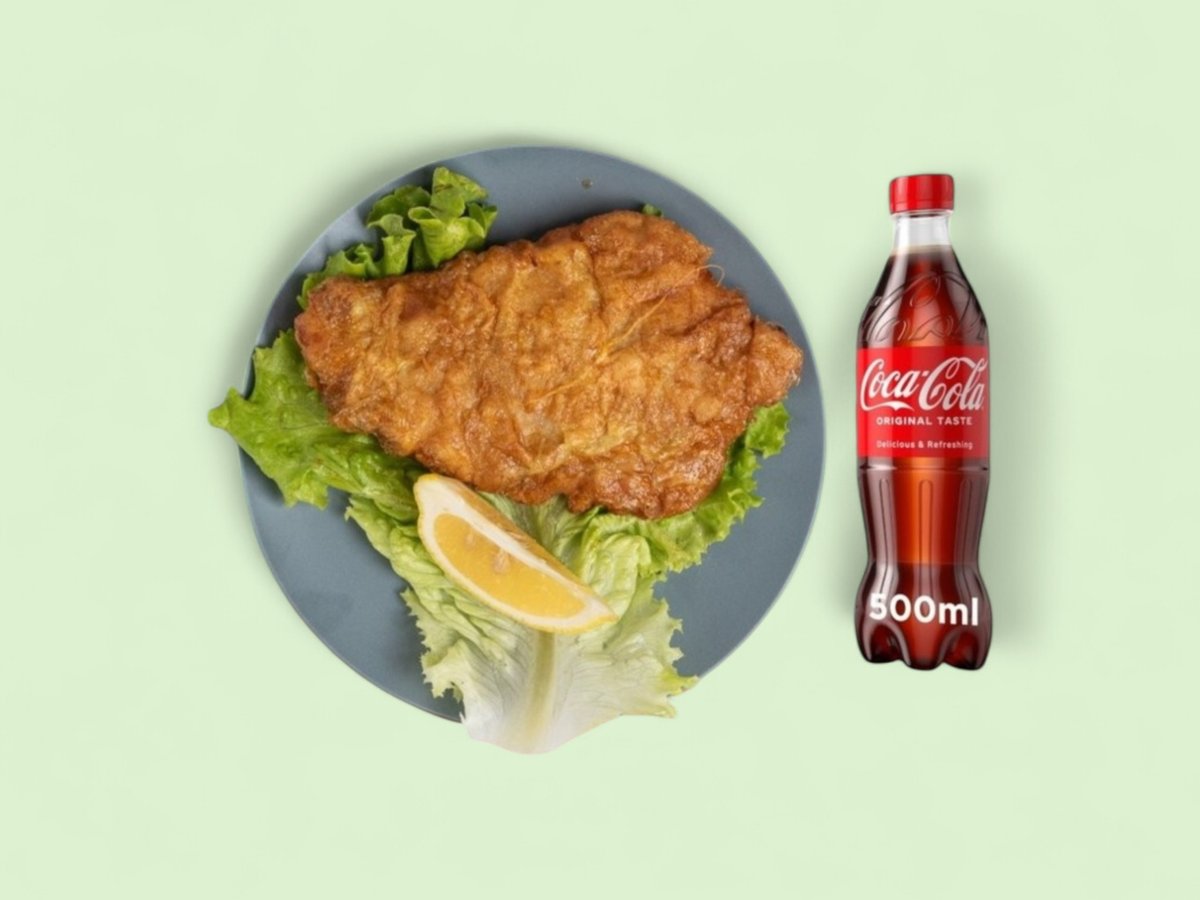 Комбо меню Натурален шницел от свинско контрафиле + Coca-Cola