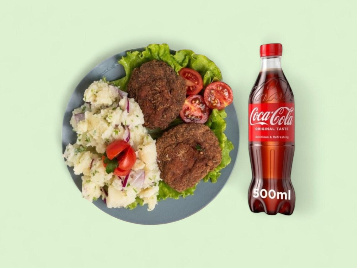 Комбо меню Пържени кюфтета с картофена салата + Coca-Cola