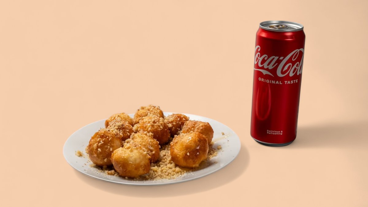 вкусни бухтички с мед и орехи в картонена кутия + Coca-Cola кен 330мл