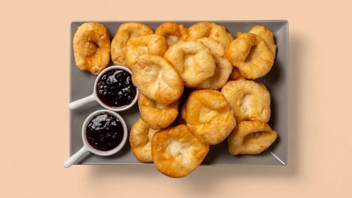 8 мини мекици, 12 бухти с пудра захар + нутела и сладко от боровинки