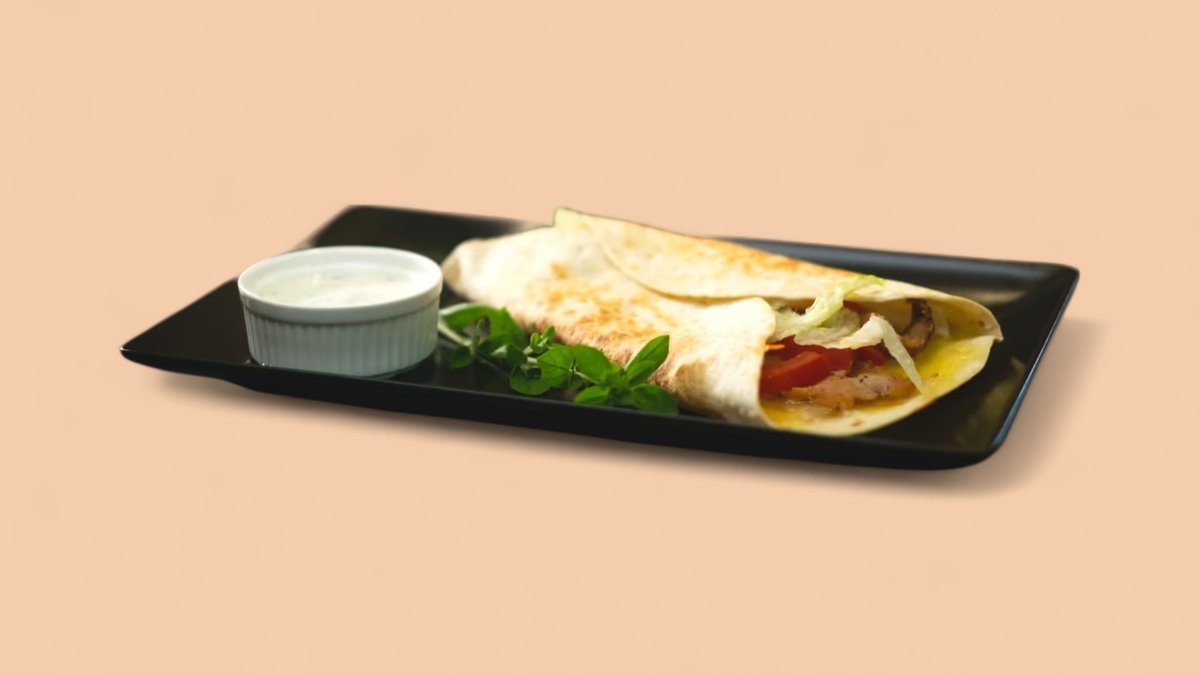 тортила с пилешки гирос, кашкавал, зелена салата и домати