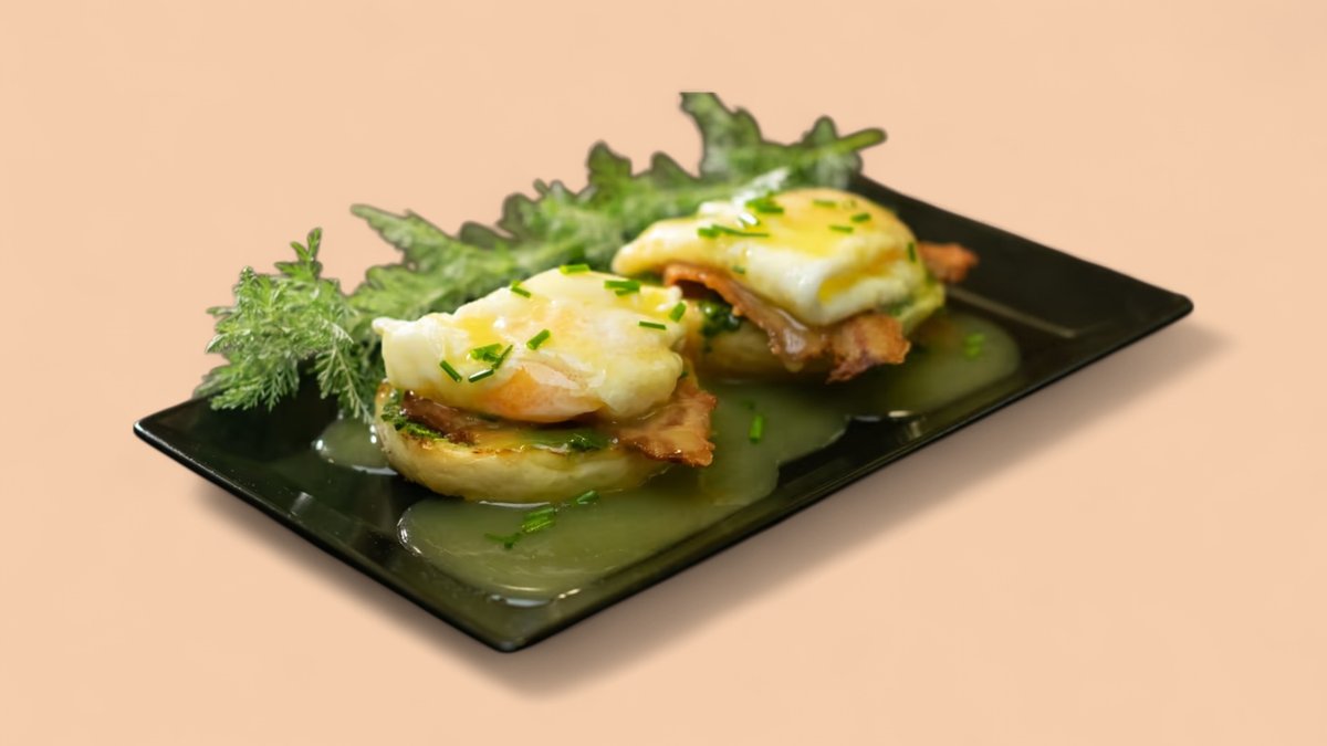 2бр. хлебчета със спанак, пържен бекон, поширани яйца и сос холандез