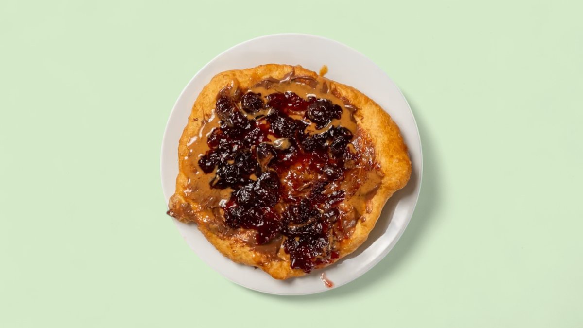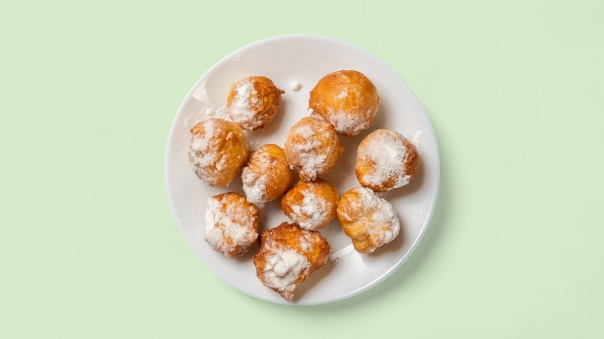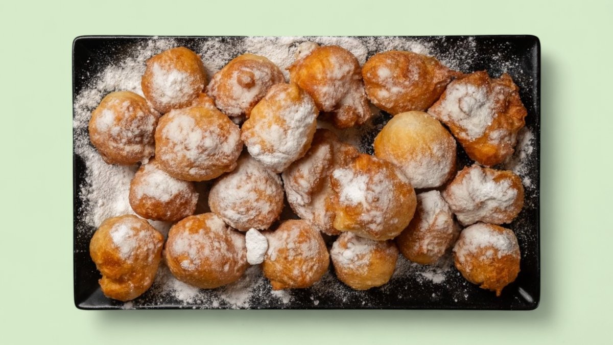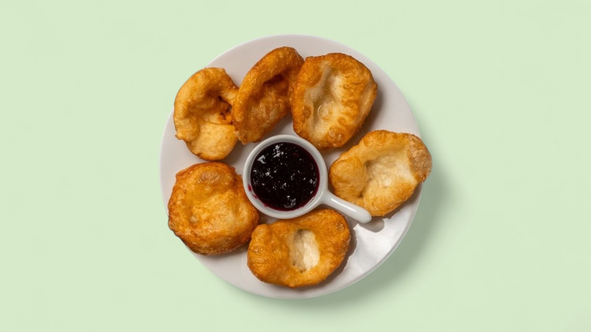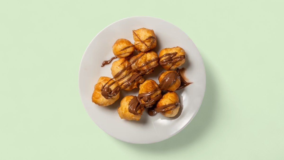8 мини мекици, 12 бухти с пудра захар, към тях Nutella и сладко от боровинки