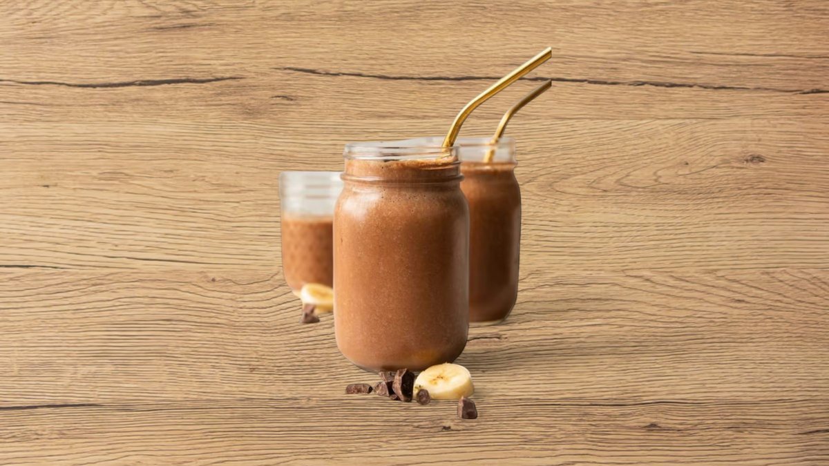 soya milk, chocolate powder, mixed fruits, 20g of whey protein, espresso